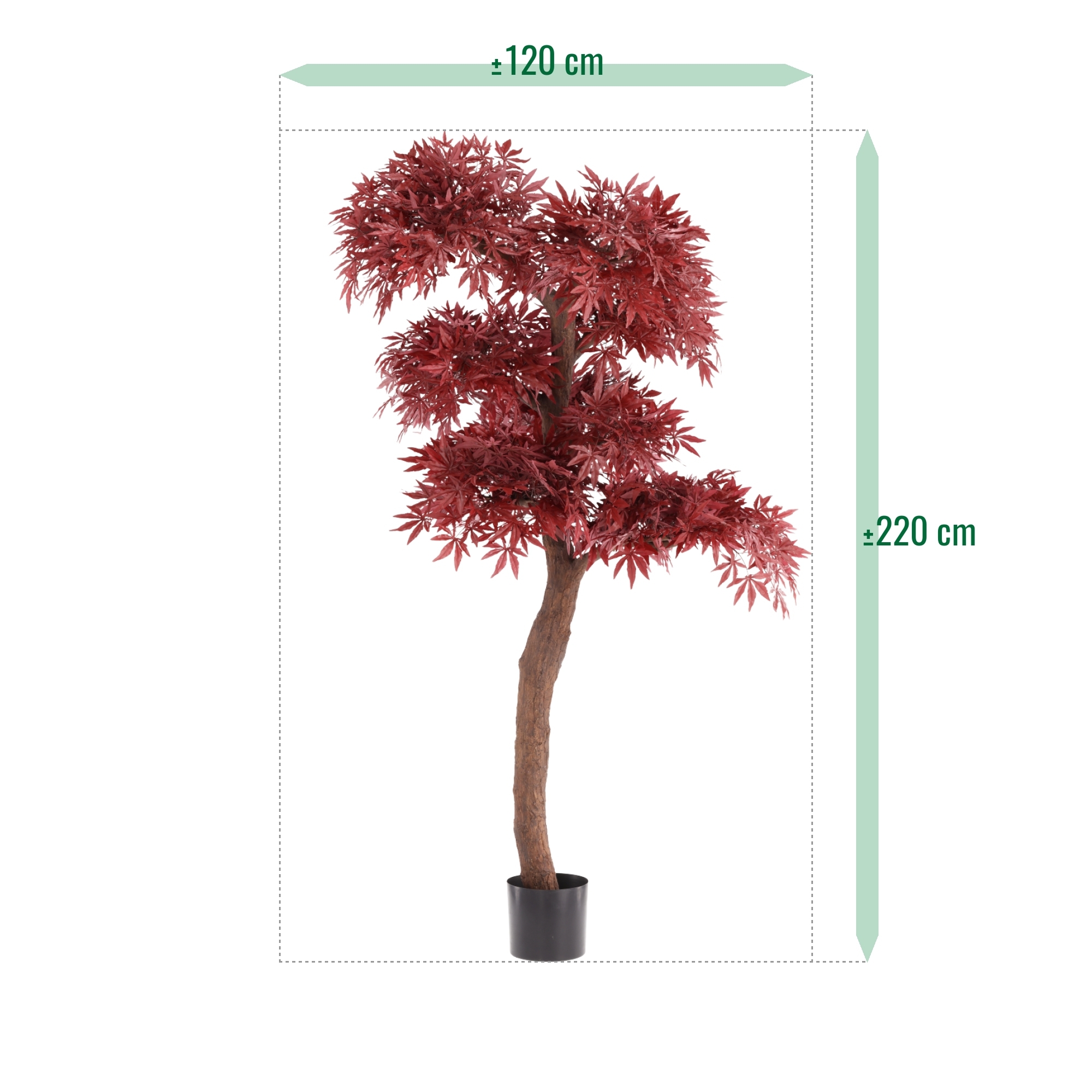 L’Albero Artificiale Acer Bonsai Deluxe 220cm Burgundy è un elemento scenografico che aggiunge immediatamente carattere e atmosfera ai tuoi ambienti. Questo Acer artificiale si ispira all’Acero Giapponese e si distingue per il fogliame color borgogna intenso e