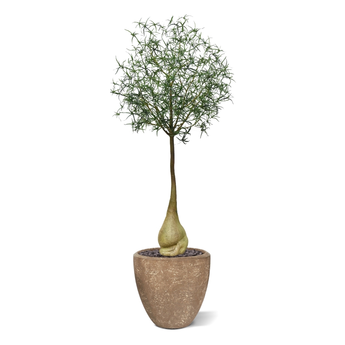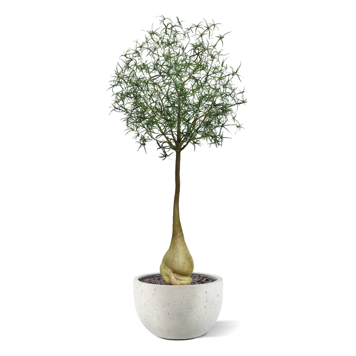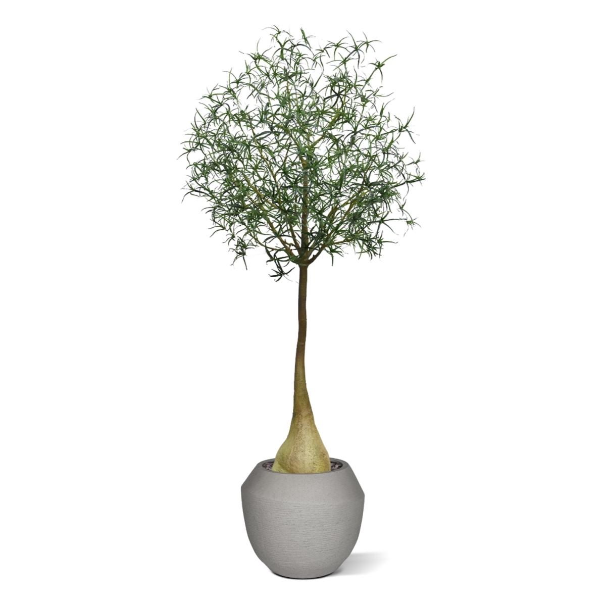 Il nome “Bottle Tree” deriva dal caratteristico tronco rigonfio dell’albero originale, che in natura immagazzina acqua durante i periodi di siccità. La nostra interpretazione artistica di questa specie straordinaria offre lo stesso effetto rilassante, ma senza necessità di manutenzione. Il Brachychiton Bottle Albero Artificiale viene consegnato in più parti, facilmente assemblabili. Prima della spedizione, i nostri specialisti modellano accuratamente ogni esemplare, pronto per essere posizionato. Grazie ai rami flessibili, puoi dare la forma che preferisci e adattarlo perfettamente al tuo stile d’arredo. Questo albero artificiale emana classe e tranquillità – ideale per soggiorni, uffici, hotel, ristoranti e sale d’attesa.