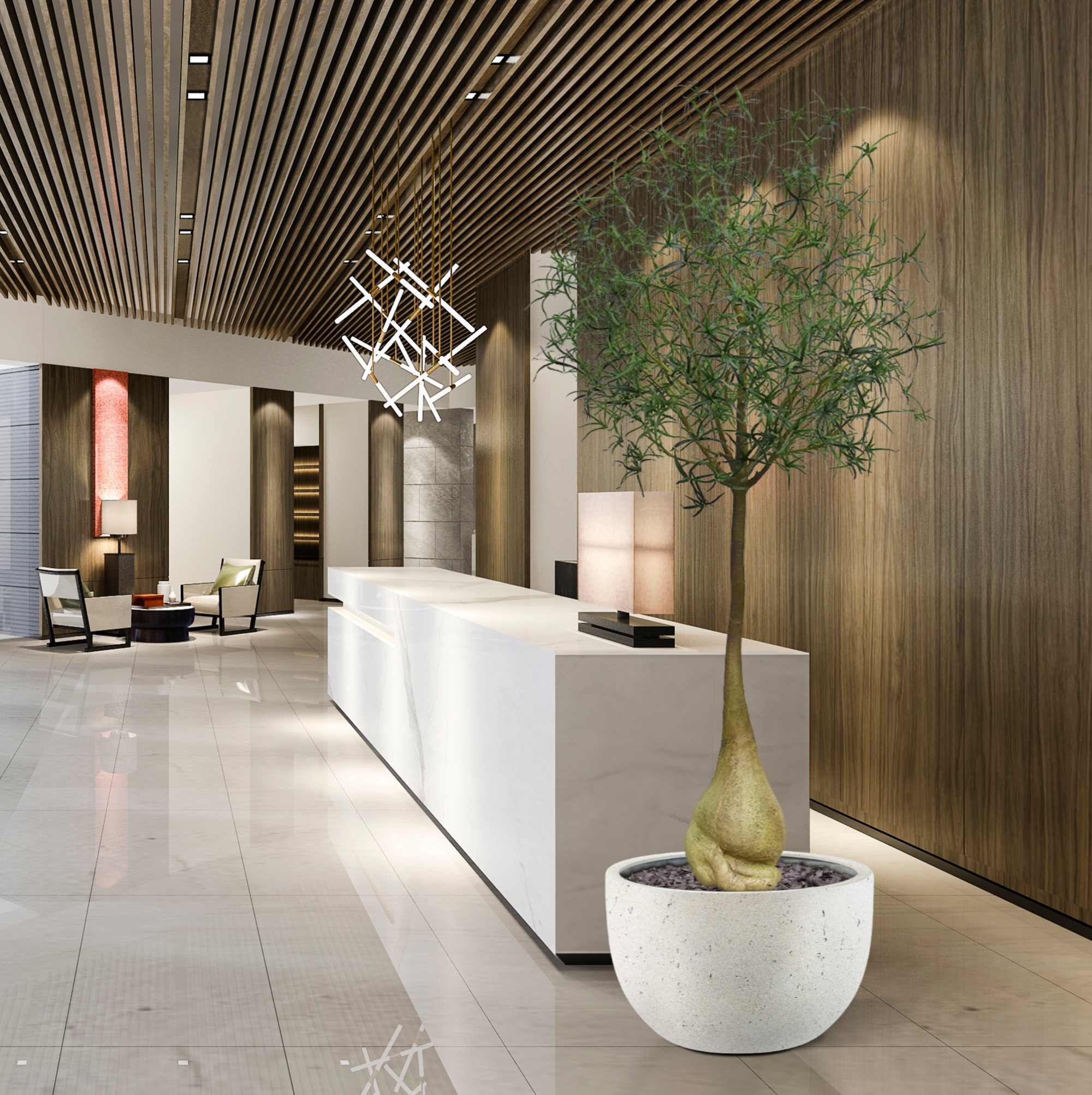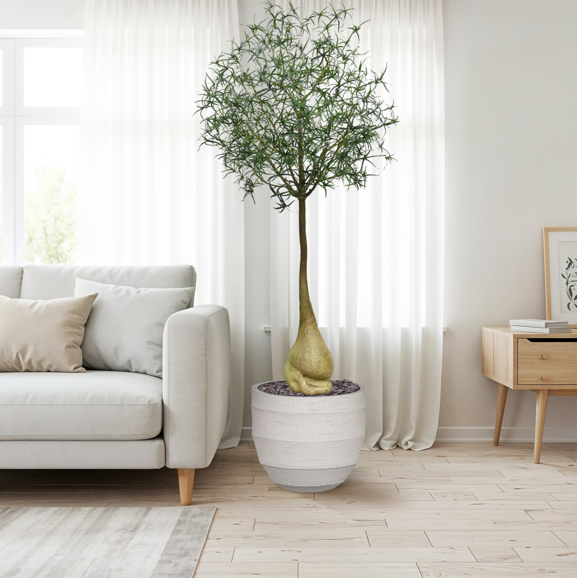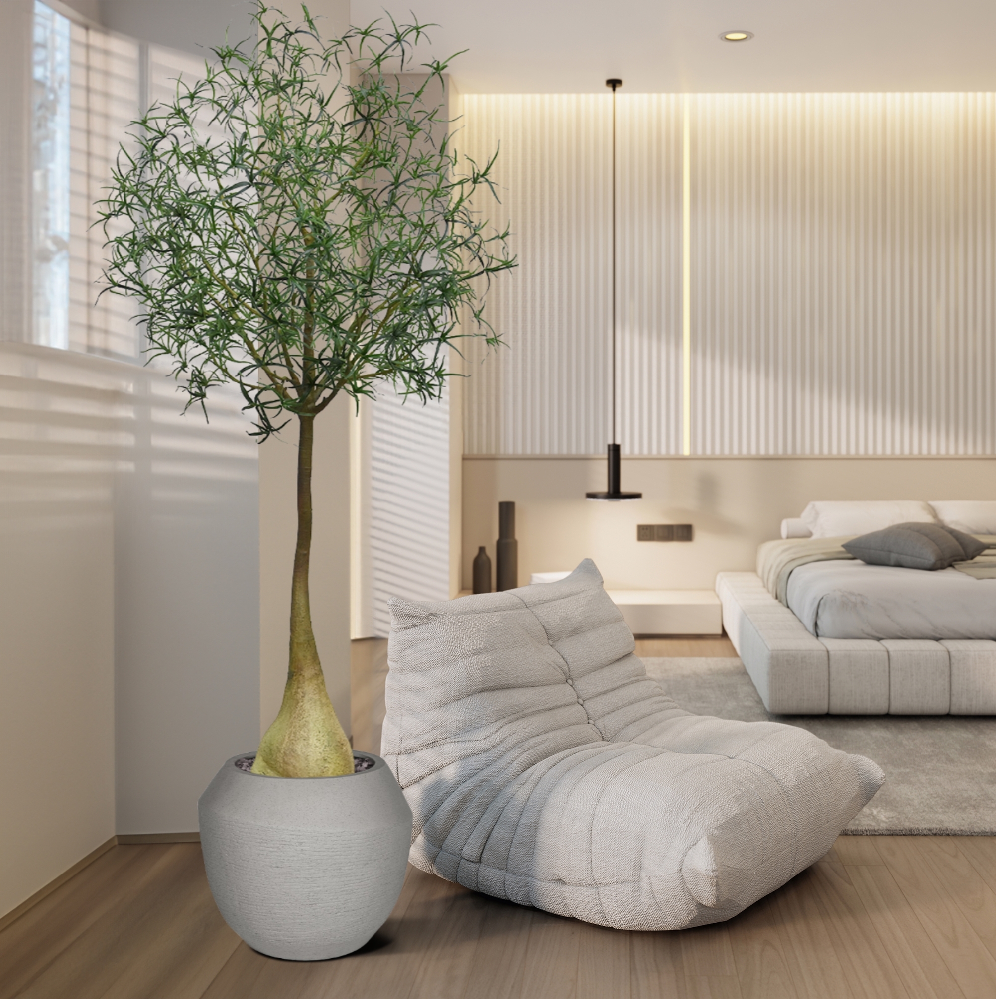 Il nome “Bottle Tree” deriva dal caratteristico tronco rigonfio dell’albero originale, che in natura immagazzina acqua durante i periodi di siccità. La nostra interpretazione artistica di questa specie straordinaria offre lo stesso effetto rilassante, ma senza necessità di manutenzione. Il Brachychiton Bottle Albero Artificiale viene consegnato in più parti, facilmente assemblabili. Prima della spedizione, i nostri specialisti modellano accuratamente ogni esemplare, pronto per essere posizionato. Grazie ai rami flessibili, puoi dare la forma che preferisci e adattarlo perfettamente al tuo stile d’arredo. Questo albero artificiale emana classe e tranquillità – ideale per soggiorni, uffici, hotel, ristoranti e sale d’attesa.