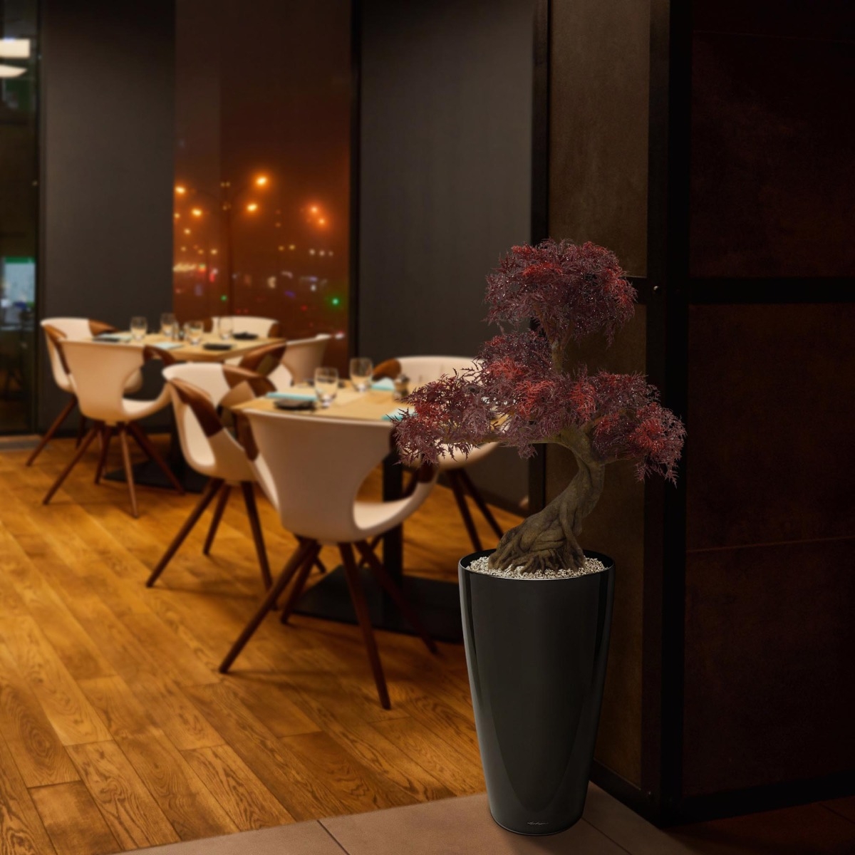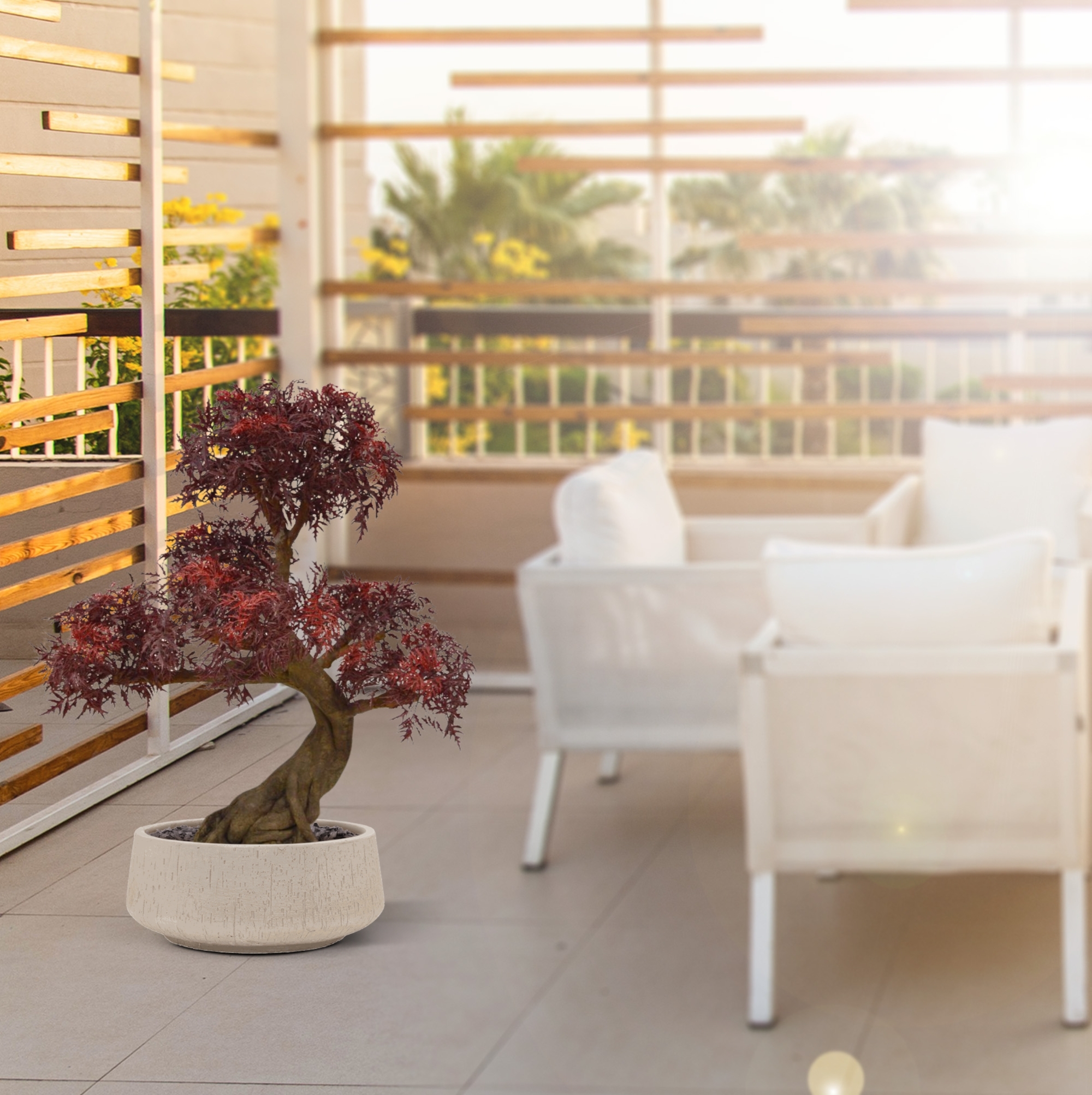 Questo bonsai di plastica Ming Aralia Burgundy da 90 cm è un'ottima decorazione per interni ed esterni. Soprattutto se si vuole creare un'atmosfera orientale! Il bonsai artistico è composto da ben 5 diverse corone di foglie di Aralia in plastica di alta qualit