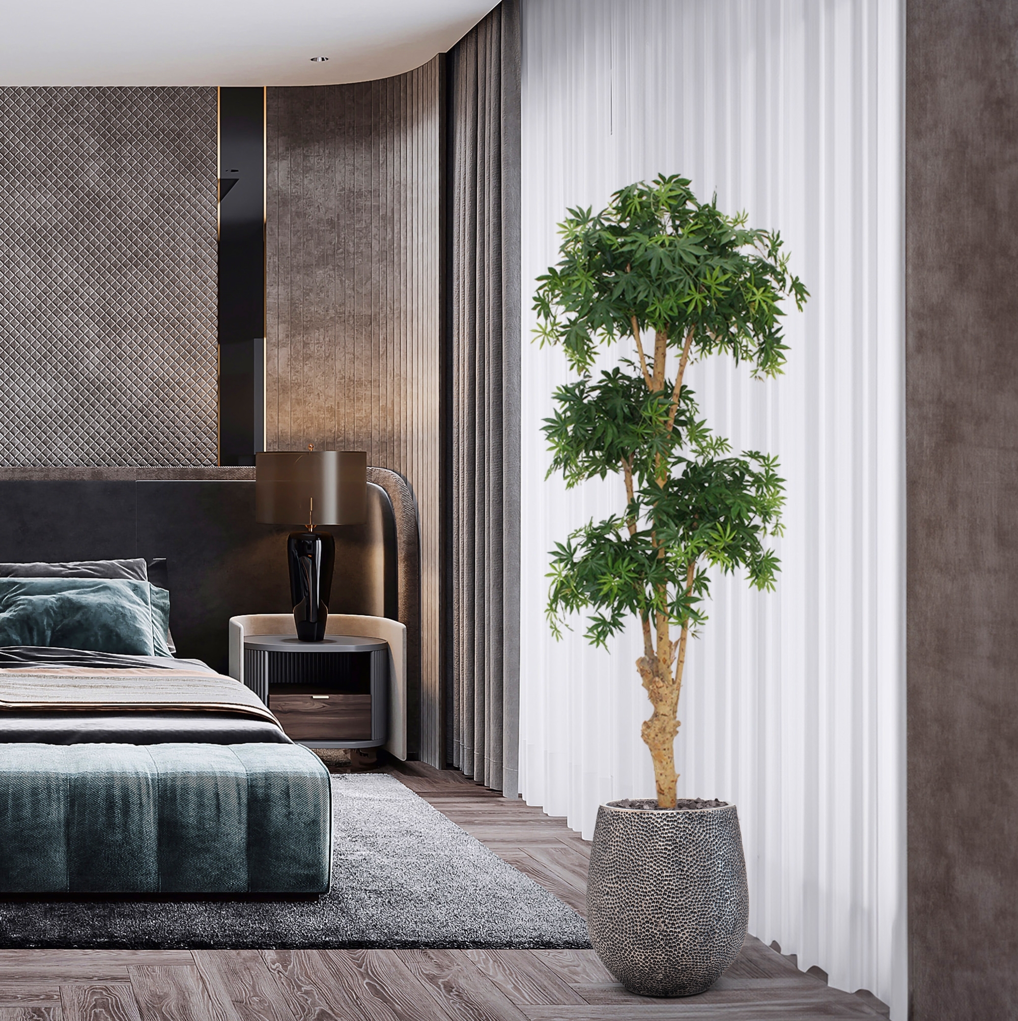 Con questo bellissimo Acer Bonsai Deluxe 170 cm verde, porterete immediatamente l'atmosfera orientale in casa vostra! L'albero artificiale di Acer ha un aspetto così sorprendentemente reale da sembrare preso direttamente da un giardino giapponese. L'Acer giapp