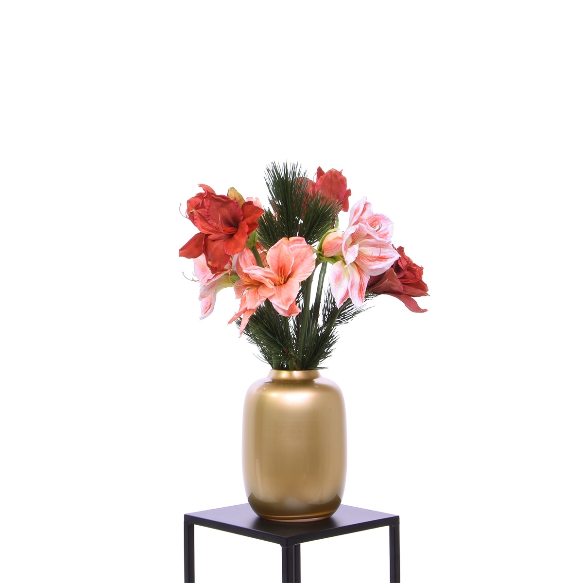 Che tu stia cercando una decorazione natalizia elegante per il tuo salotto, un'aggiunta bellissima per il tavolo della cucina o un tocco festivo per il tuo ufficio, questa composizione artificiale è la scelta perfetta. Goditi la bellezza senza tempo di questo bouquet senza preoccuparti della manutenzione. Il bouquet è legato a mano da fioristi esperti, creando un aspetto naturale e vivace che splenderà per tutta la stagione. Questo bouquet è venduto senza il vaso decorativo mostrato: Artic S gold D21 x H29 cm.