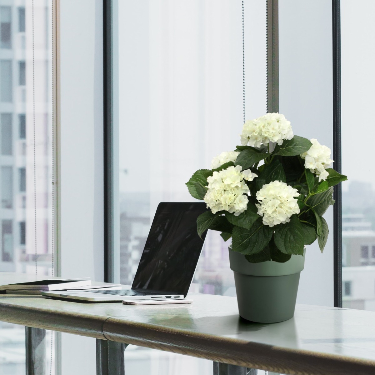 Pianta artificiale di ortensia deluxe 45 cm - crema