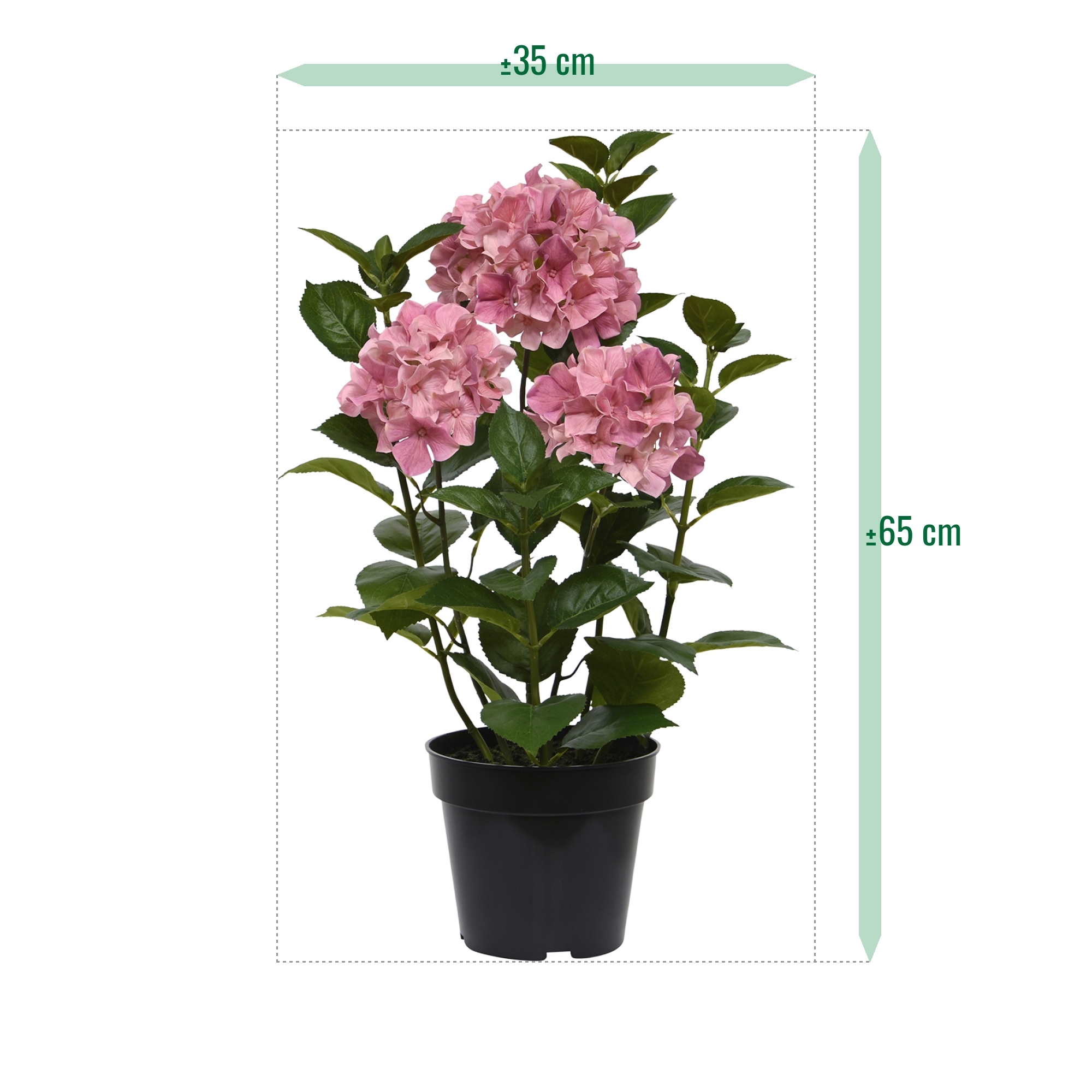 Ortensia Pianta artificiale in vaso 65cm Rosa