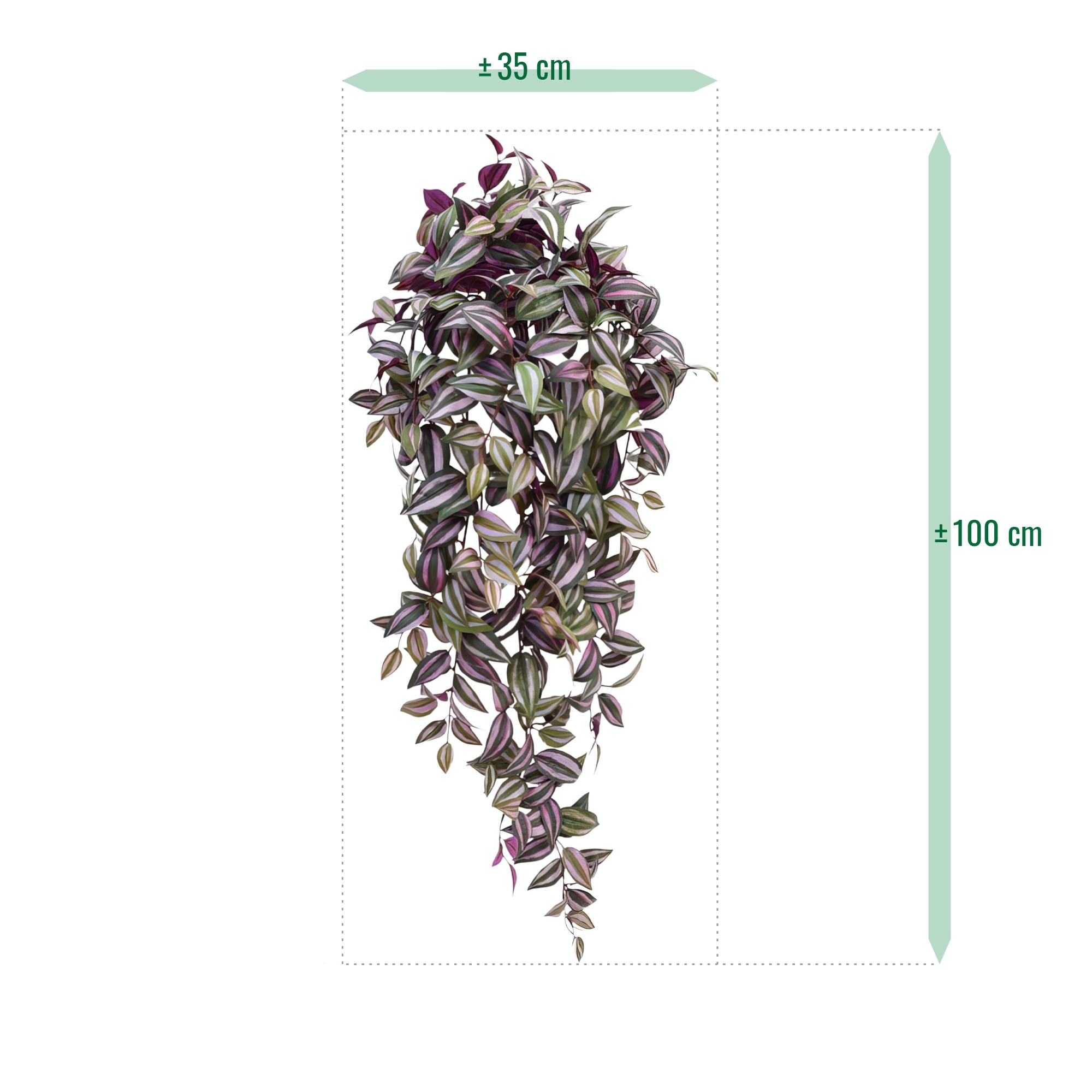 Questa splendida e coloratissima Tradescantia artificiale appesa da 100 cm viola ha un aspetto estremamente fedele alla natura ed è una pianta artificiale di altissima qualità. La pianta artificiale Tradescntia (Zebrina Pendula), nei Paesi Bassi chiamata anche