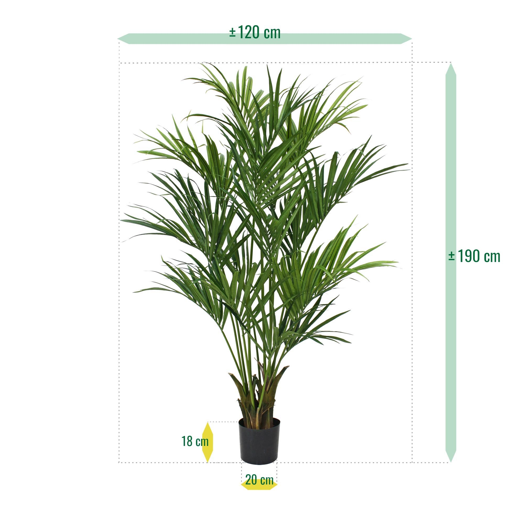 La palma Kentia è probabilmente la palma più famosa e per una buona ragione. Questa nuova palma artificiale porta i tropici in casa vostra! La Kentia XL extra full è un nuovo modello della serie Kentia. L'altezza della palma supera i 190 cm, il diametro è di ±