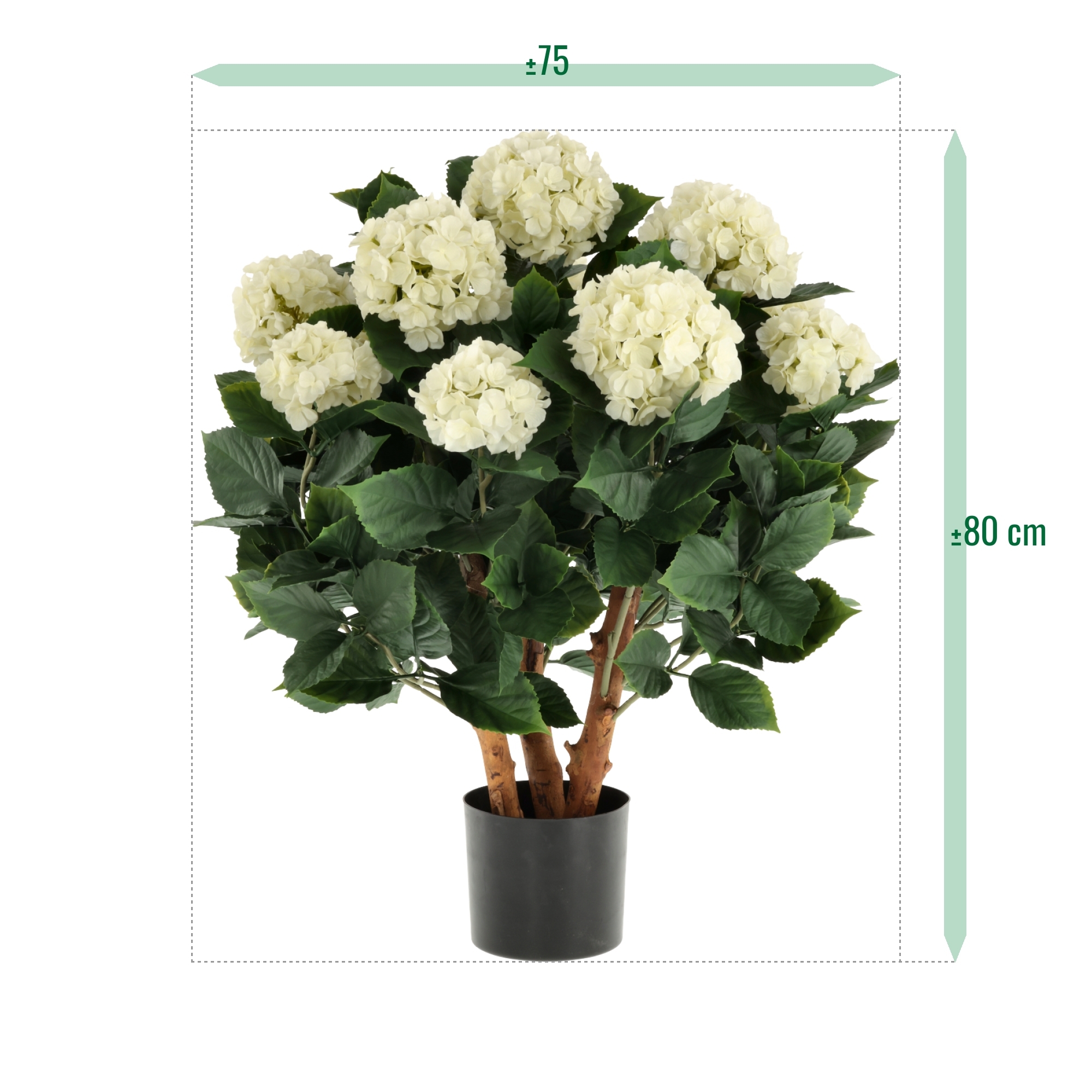 Con un'altezza di 80 cm e una larghezza di 75 cm, questa ortensia artificiale è una meravigliosa aggiunta a terrazze, balconi e giardini. Grazie al suo design speciale per esterni e alla protezione UV, la pianta mantiene un aspetto fresco e vivace senza sbiadire al sole. Inoltre, questa pianta artificiale viene fornita di serie in un resistente vaso interno da 17x15 cm, rendendola facile da posizionare in un vaso decorativo a scelta.
