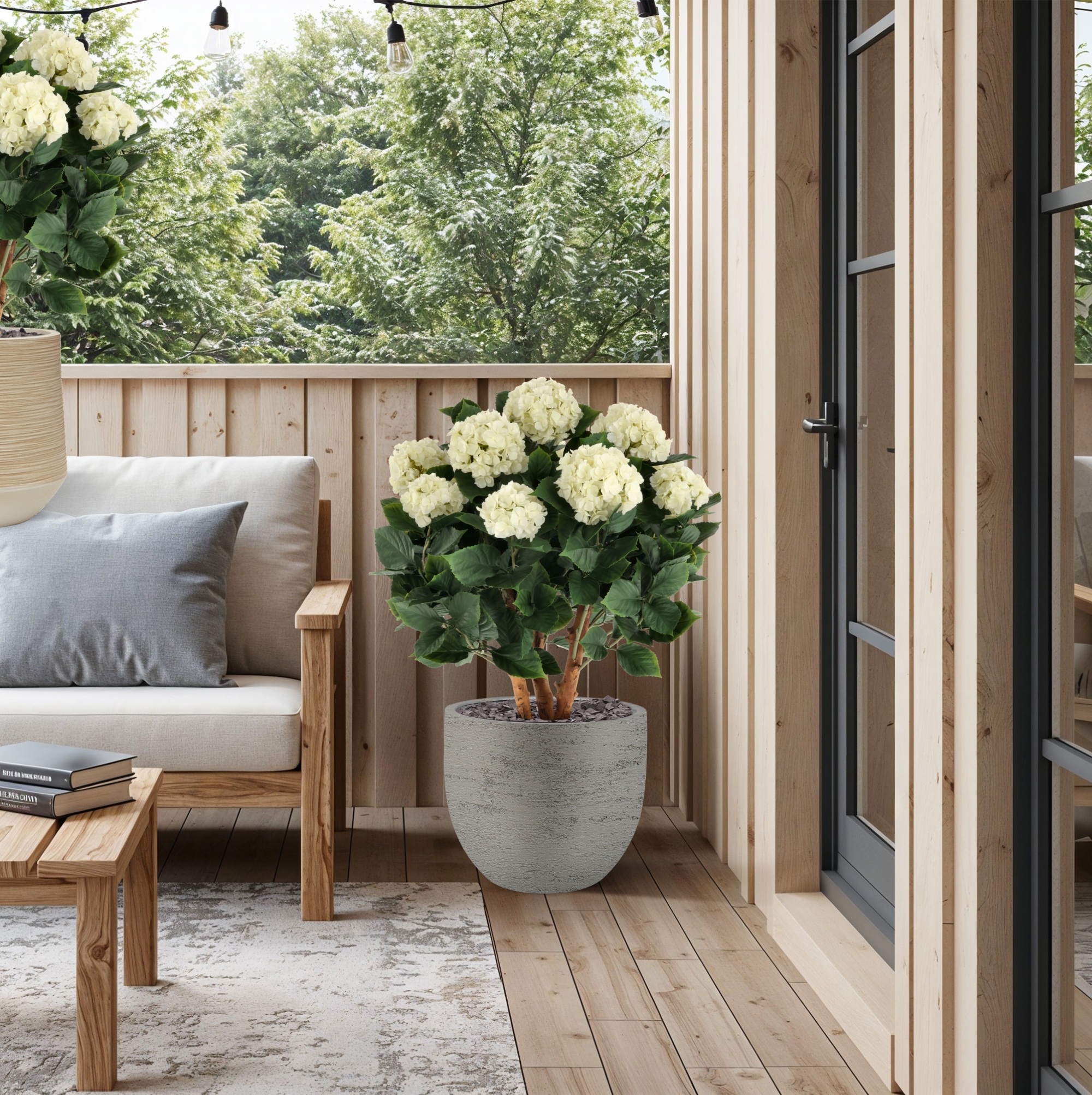 Vuoi goderti uno spazio esterno sempre fiorito tutto l'anno? Con l’Hortensia UV Pianta Artificiale Deluxe 80cm Crema di BM™ Luxury è possibile! Questo esclusivo design di BM™ Luxury combina tronchi in vero legno con foglie verde intenso e ben 12 splendide sfere floreali in un elegante colore crema. Grazie alla sua finitura dettagliata, questa ortensia artificiale è quasi indistinguibile da una vera.