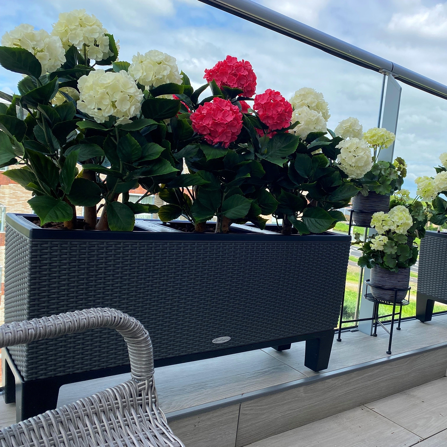 La Hortensia UV Pianta Artificiale Deluxe 65cm Crema aggiunge istantaneamente un'atmosfera elegante e botanica a qualsiasi spazio esterno, senza necessità di manutenzione. Questo design esclusivo combina tre tronchi in legno vero con foglie realistiche e sei splendide sfere floreali in un'elegante tonalità crema. Grazie ai dettagli raffinati e alle sottili variazioni di colore, questa pianta artificiale ha un aspetto naturale e realistico, rendendola quasi indistinguibile da una vera ortensia.