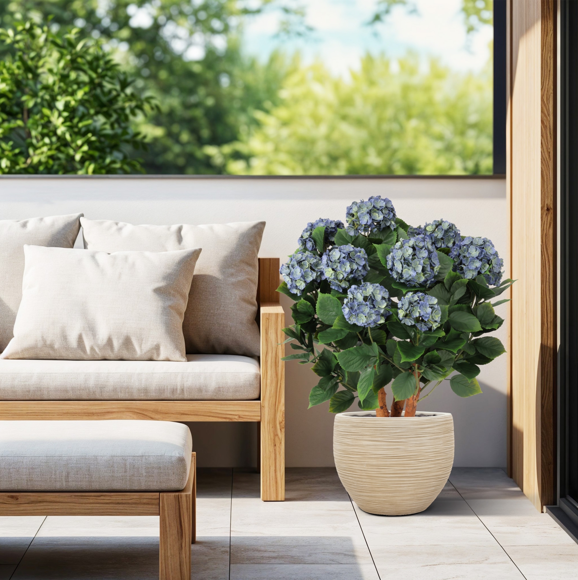Vuoi goderti uno spazio esterno sempre fiorito tutto l'anno? Con l’Hortensia UV Pianta Artificiale Deluxe 80cm Blu di BM™ Luxury è possibile! Questo esclusivo design di BM™ Luxury combina tronchi in vero legno con foglie verde intenso e ben 12 splendide sfere