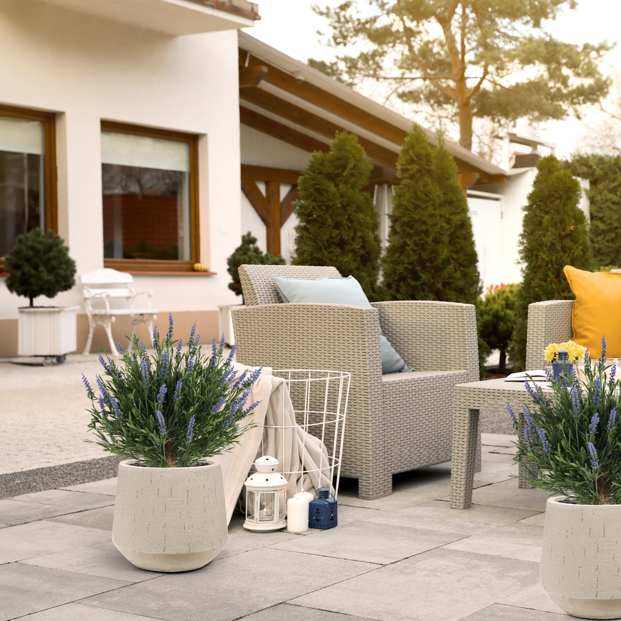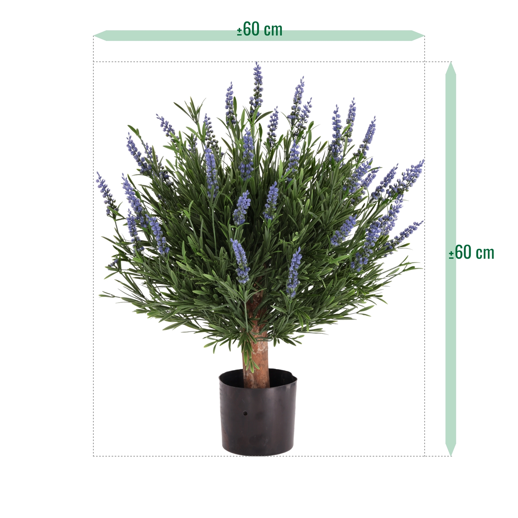 La Piantina di Lavanda Artificiale Sferica UV Blu 60cm è un’aggiunta decorativa e affascinante per qualsiasi ambiente esterno. Con un’altezza di 60 cm e una larghezza di 60 cm, questa lavanda artificiale da esterno dona immediatamente colore, atmosfera e un aspetto rilassante a terrazze, balconi, patio e ingressi. I grappoli di fiori blu, realizzati con grande cura, offrono un aspetto fresco e vivace, quasi indistinguibile dalla lavanda naturale. Un vero tronco in legno viene utilizzato per garantire una struttura autentica e una finitura di alta qualità. Questa lavanda artificiale blu si integra perfettamente in ambienti rustici, mediterranei e moderni.