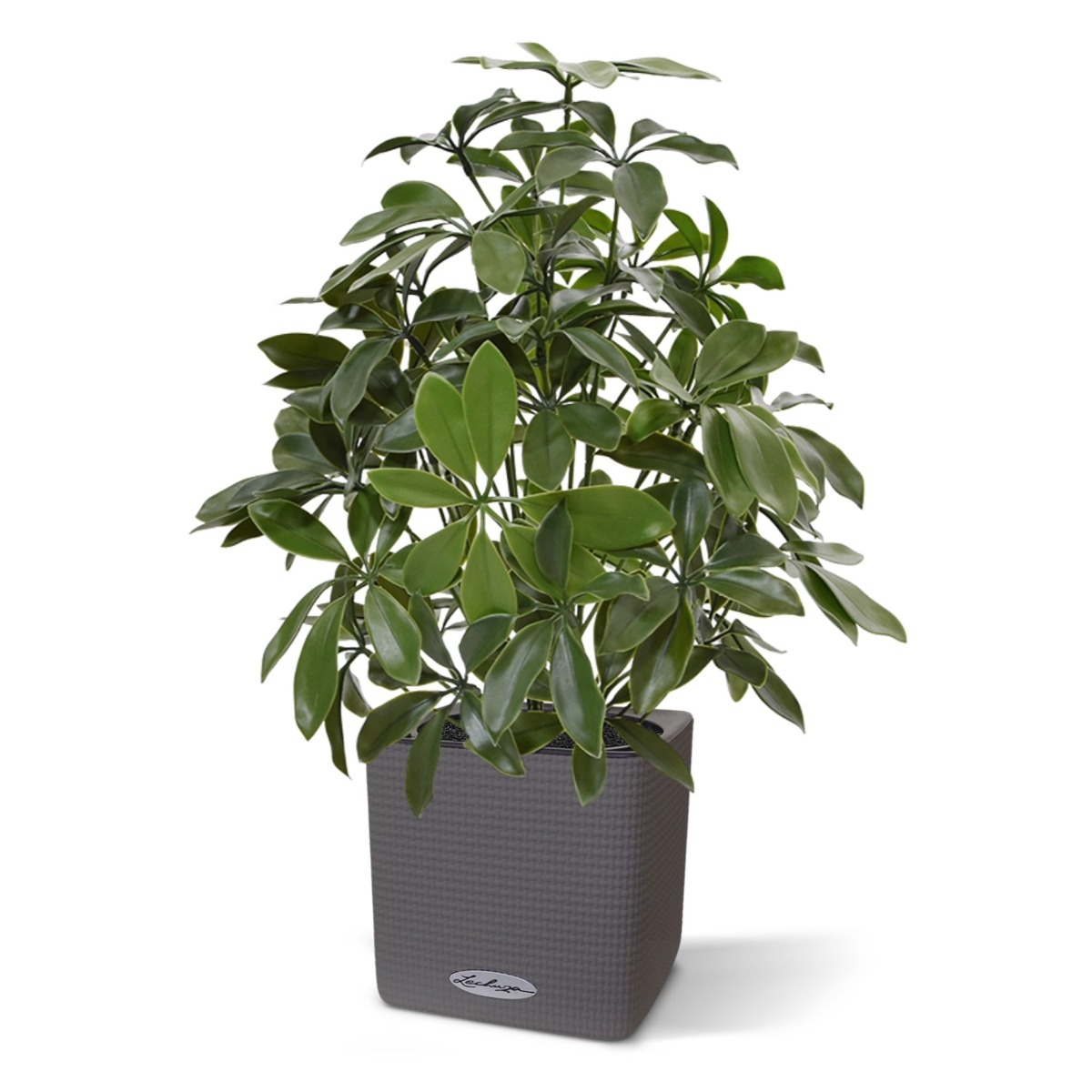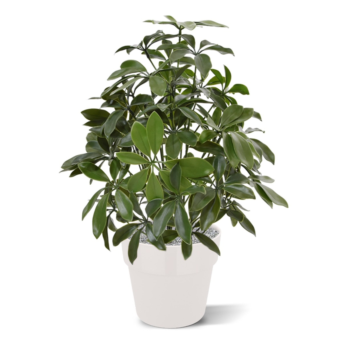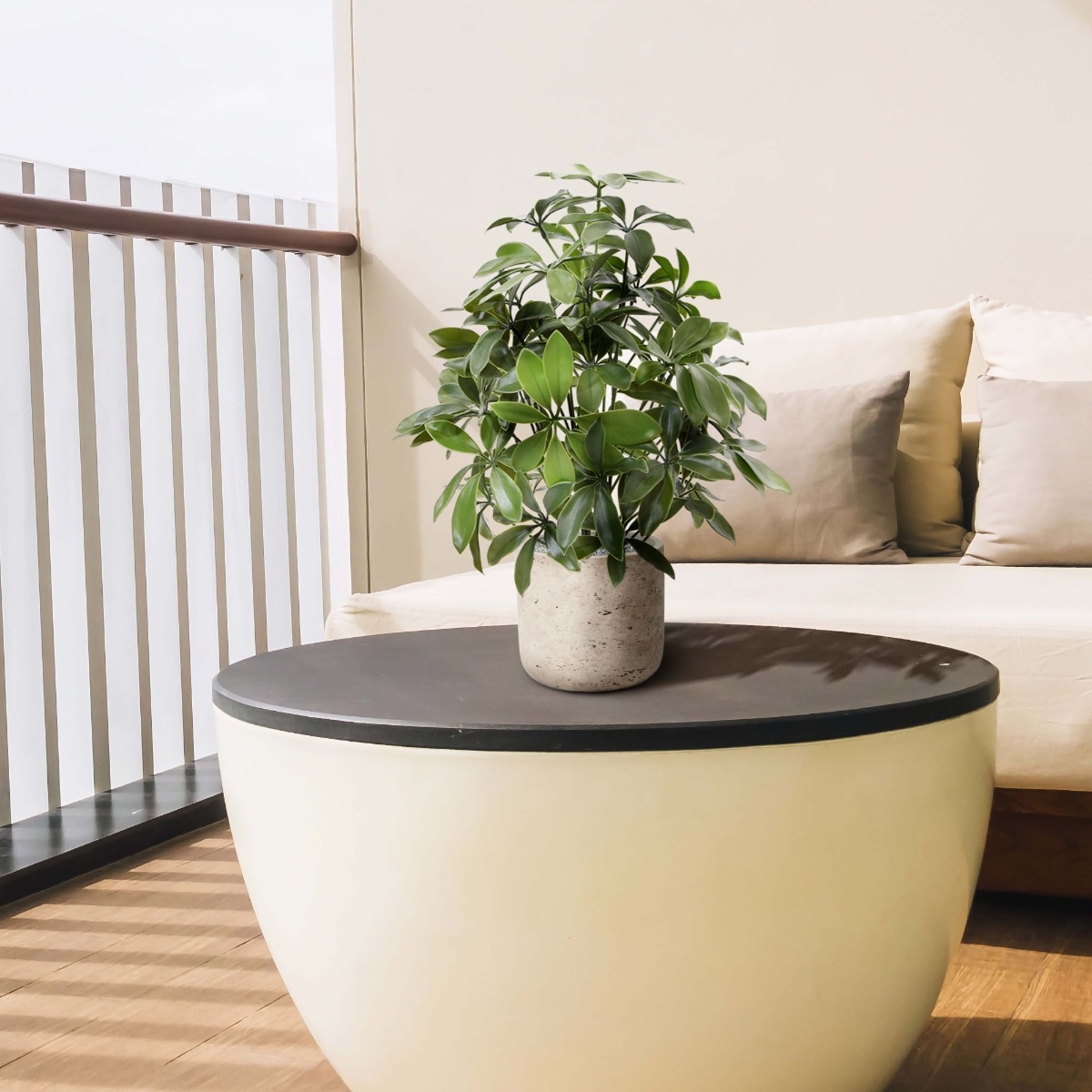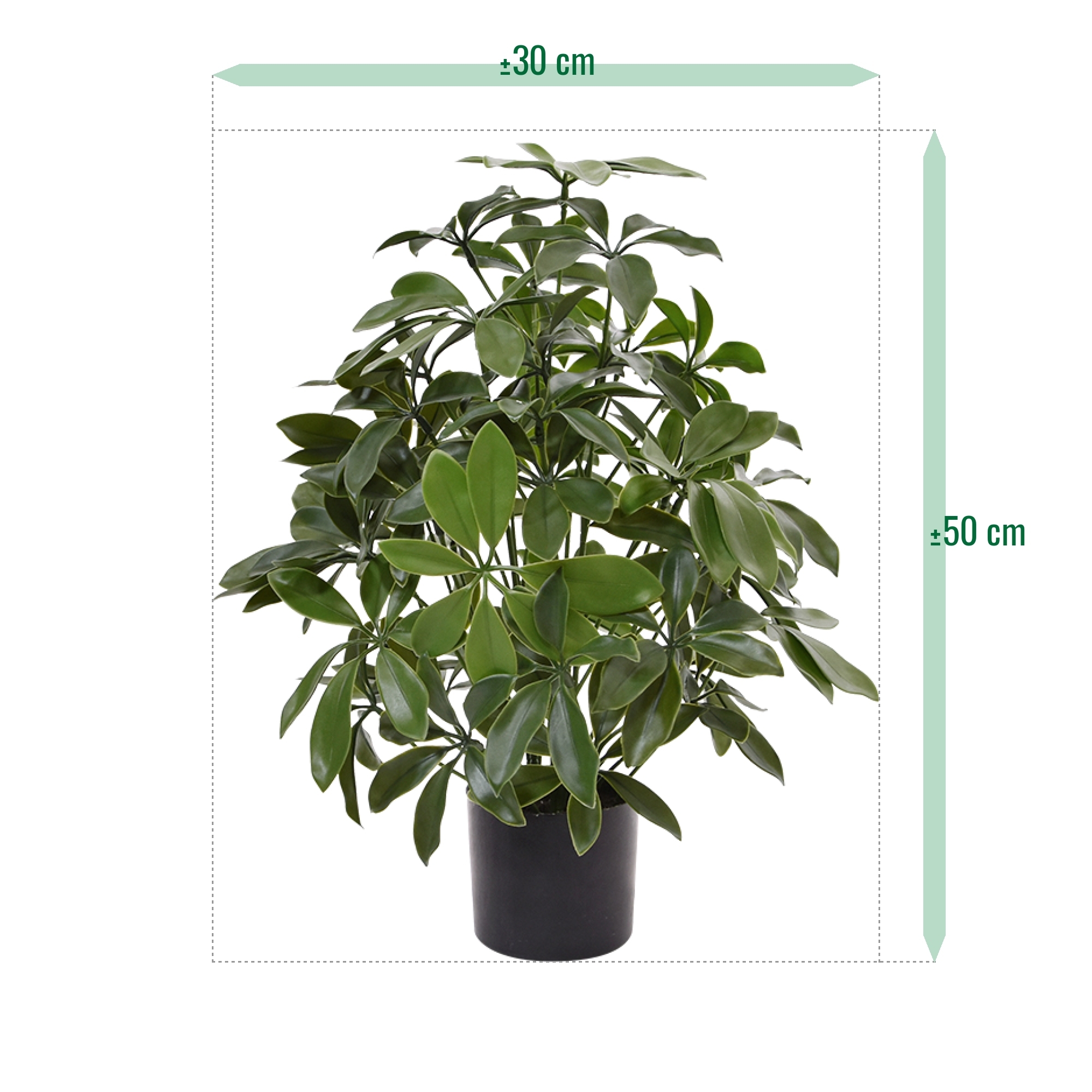 Alta circa 50 cm, questa Schefflera artificiale resistente ai raggi UV è una pianta versatile. Mettete la pianta in un vaso ornamentale e avrete una bella decorazione meridionale da esporre sul tavolo. Poiché il protettore UV è incorporato nella materia prima