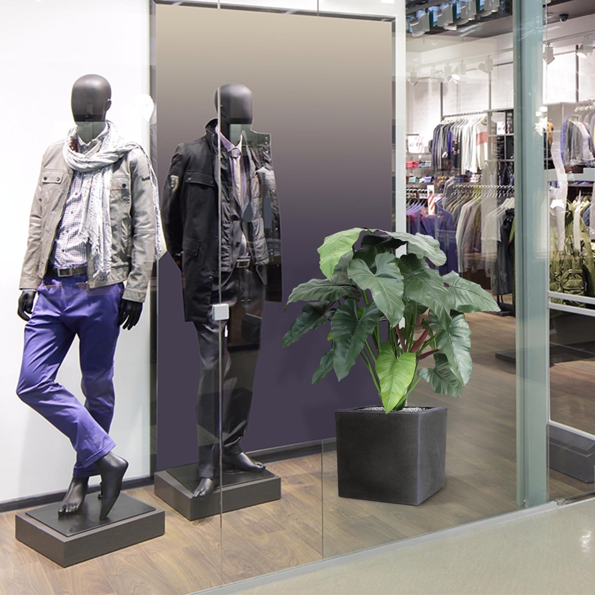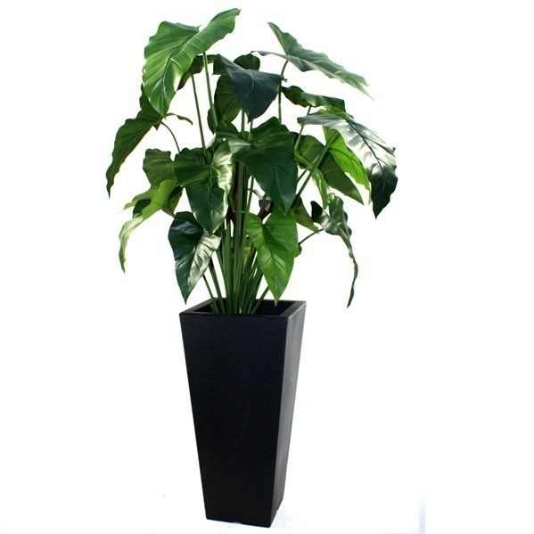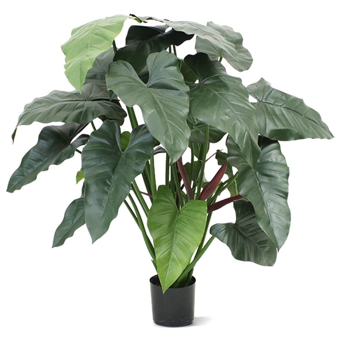 La pianta artificiale Philodendron XL ha un grande impatto anche grazie alle sue grandi foglie. Le foglie adulte sono di colore verde scuro, mentre i giovani germogli sono di colore rosso scuro, il che conferisce alla pianta un aspetto particolarmente naturale