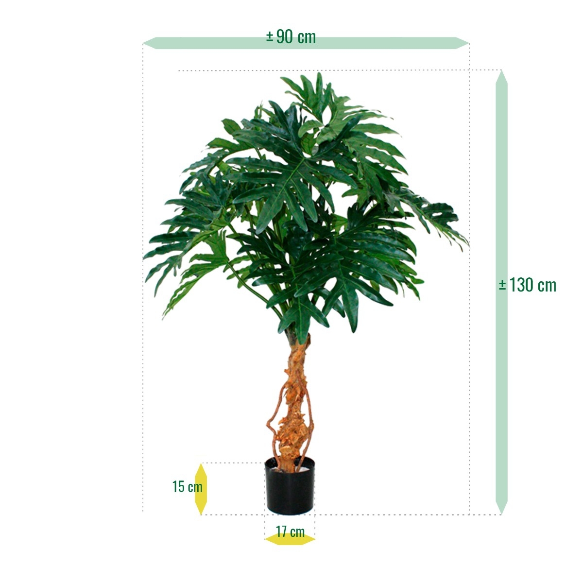 Questa gigantesca Philo, della specie Selloum, è anche chiamata popolarmente pianta del buco. Le foglie verde scuro brillante non sono solo molto belle da imitare, ma anche di dimensioni molto grandi, facendo sembrare la pianta molto voluminosa. Il diametro de