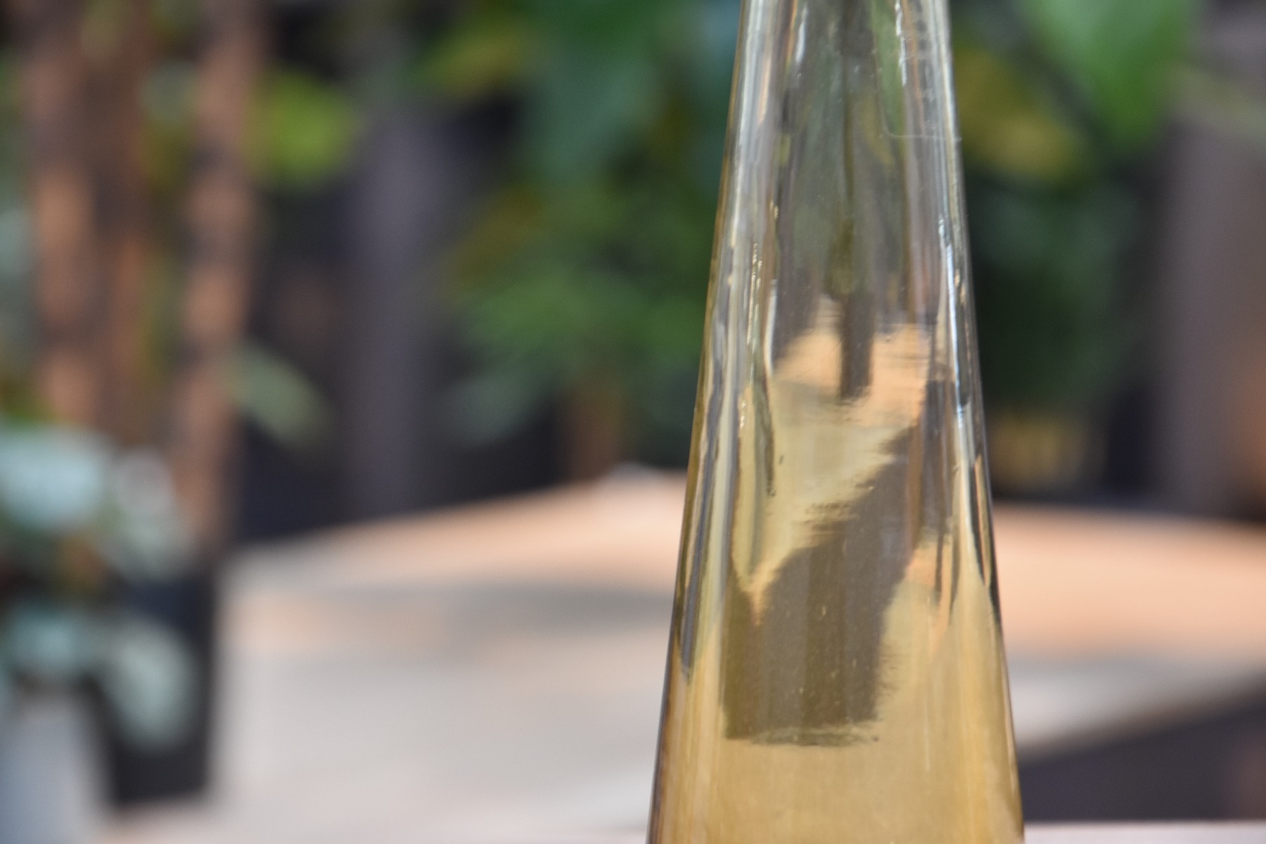 * De vaas is gemaakt van glas