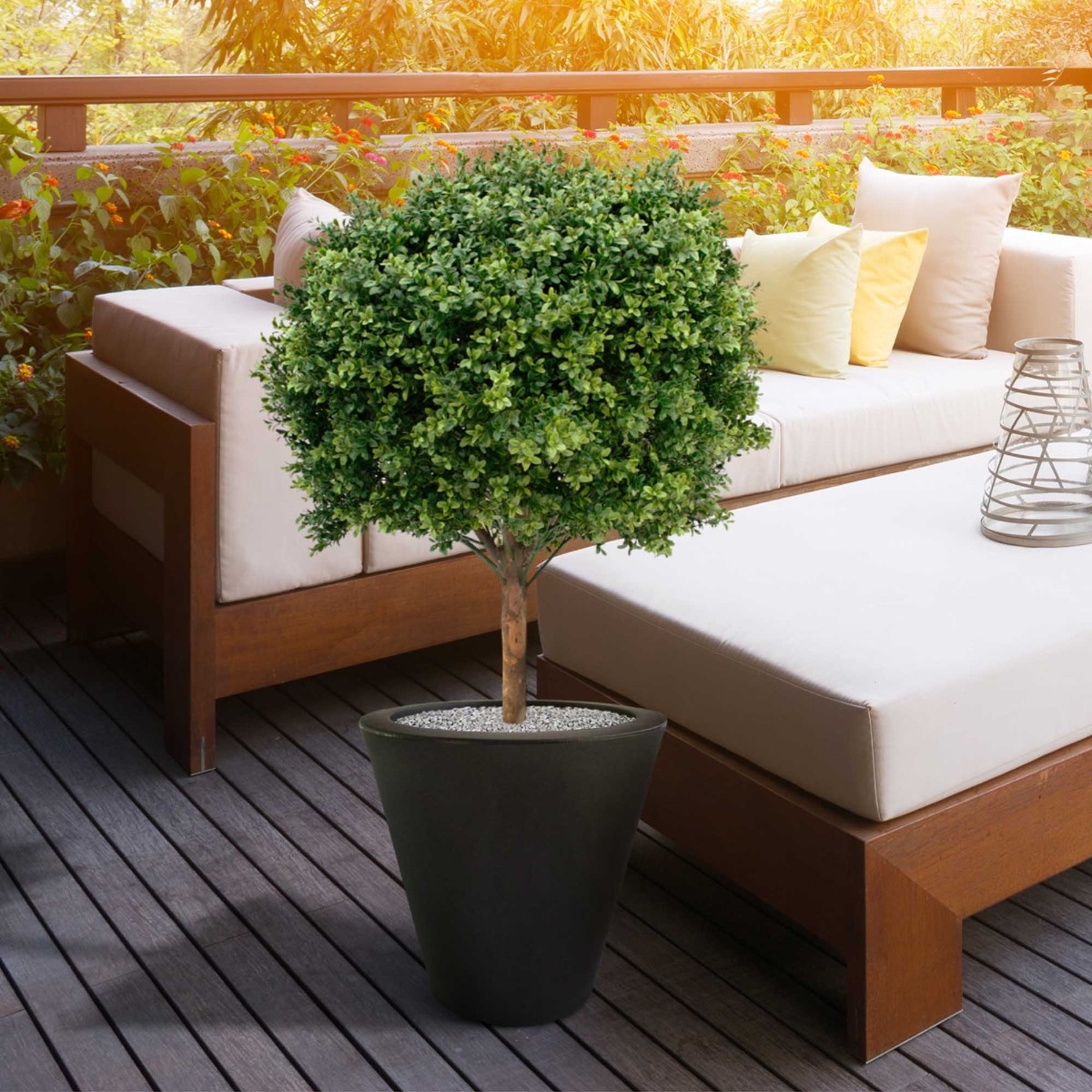 Il Buxus Bulb Deluxe 80 cm UV è realizzato in PVC di alta qualità. Ciò rende questo albero artificiale UV ideale per realizzare splendide decorazioni all'aperto. La versione rinnovata è soprattutto per il suo colore e le nuove foglie quasi indistinguibile dal
