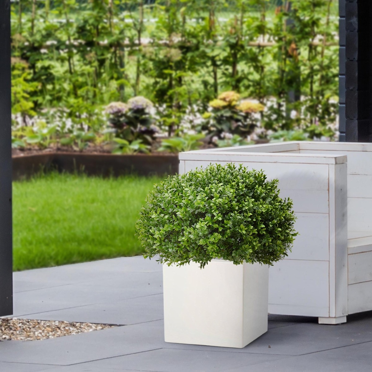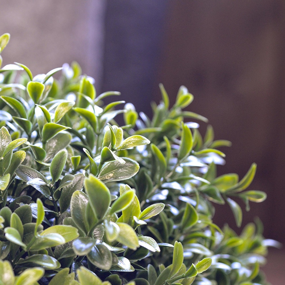 La metà artificiale del Buxus Bulb è realizzata in PVC di alta qualità. Ciò rende questo albero artificiale resistente ai raggi UV ideale per le decorazioni esterne.