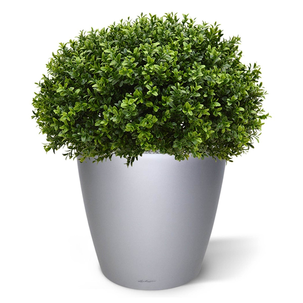 Questo Buxus Half è caratterizzato dal fatto che la parte inferiore della chioma è in realtà dritta ed è quindi una mezza sfera. Il Buxus appare così più piatto su un vaso ornamentale.