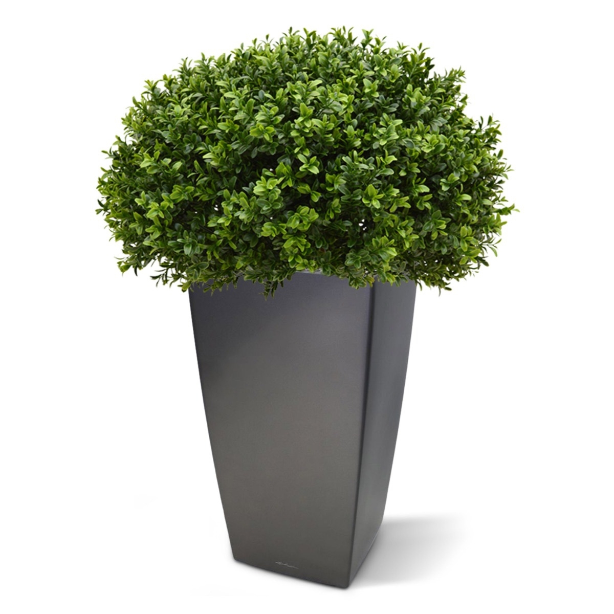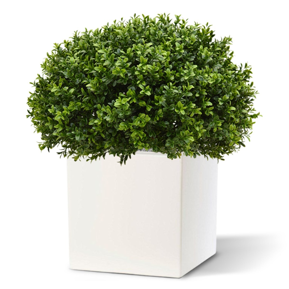 La versione rinnovata è, soprattutto per il suo colore e le nuove foglie, quasi indistinguibile dal vero Buxus! L'albero di Buxus è alto complessivamente 65 cm. Il diametro è di circa 55 cm.