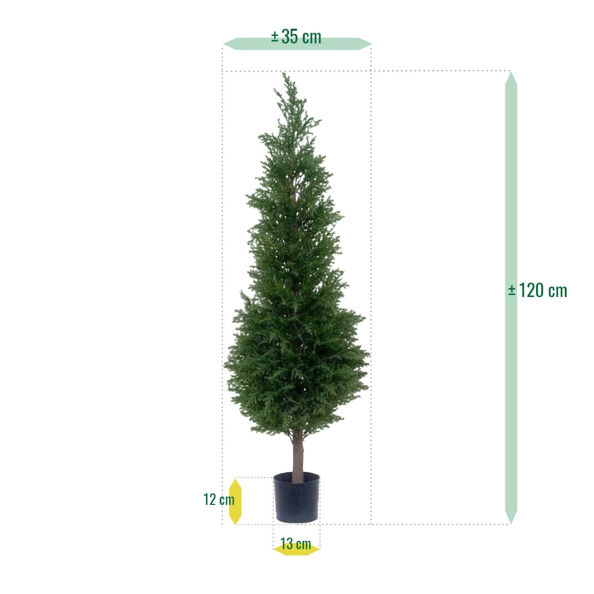 Veramente unico nel mondo degli alberi artificiali è questo Cipresso artificiale resistente ai raggi UV da 120 cm. Poiché il protettore UV nella materia prima è lavorato, possiamo garantire che questa conifera per 8 anni non scolorisce! Lusso, da PVC di alta q