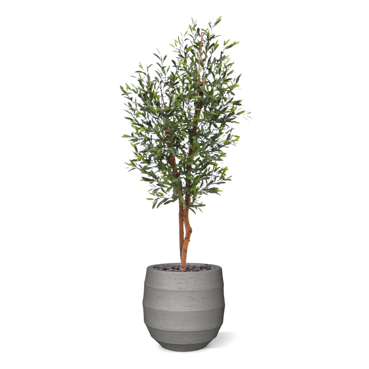 L’albero viene fornito di serie in un vaso di plastica. Per una presentazione più elegante, il vaso decorativo mostrato è disponibile separatamente. Ideale per aggiungere un tocco di verde al giardino, al terrazzo o all’ingresso. Grazie a questo ulivo artificiale puoi godere dell’atmosfera mediterranea senza alcuna manutenzione.