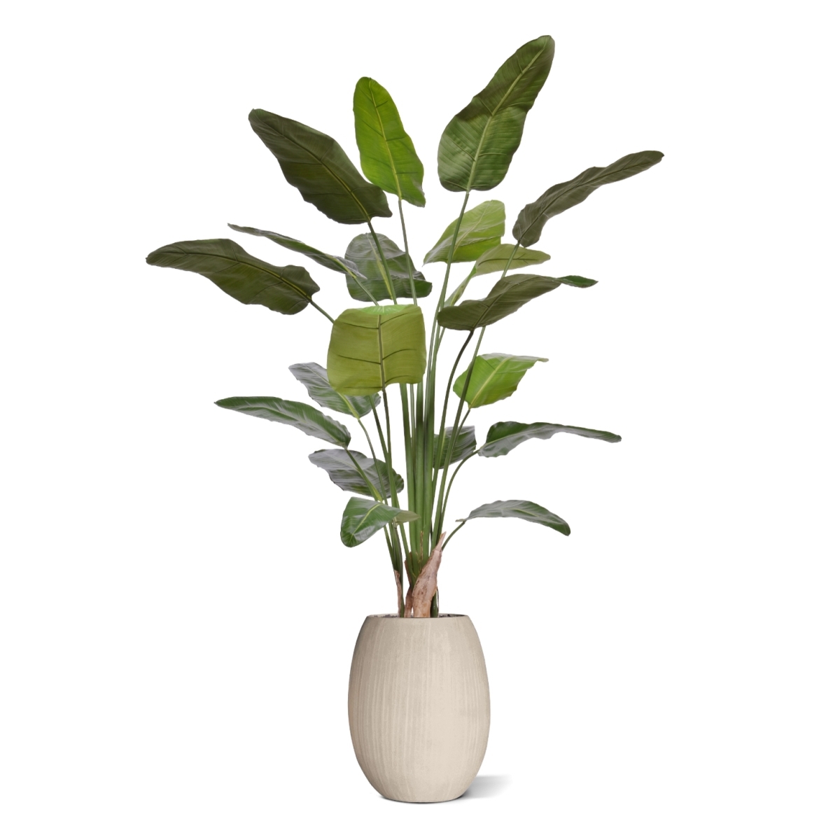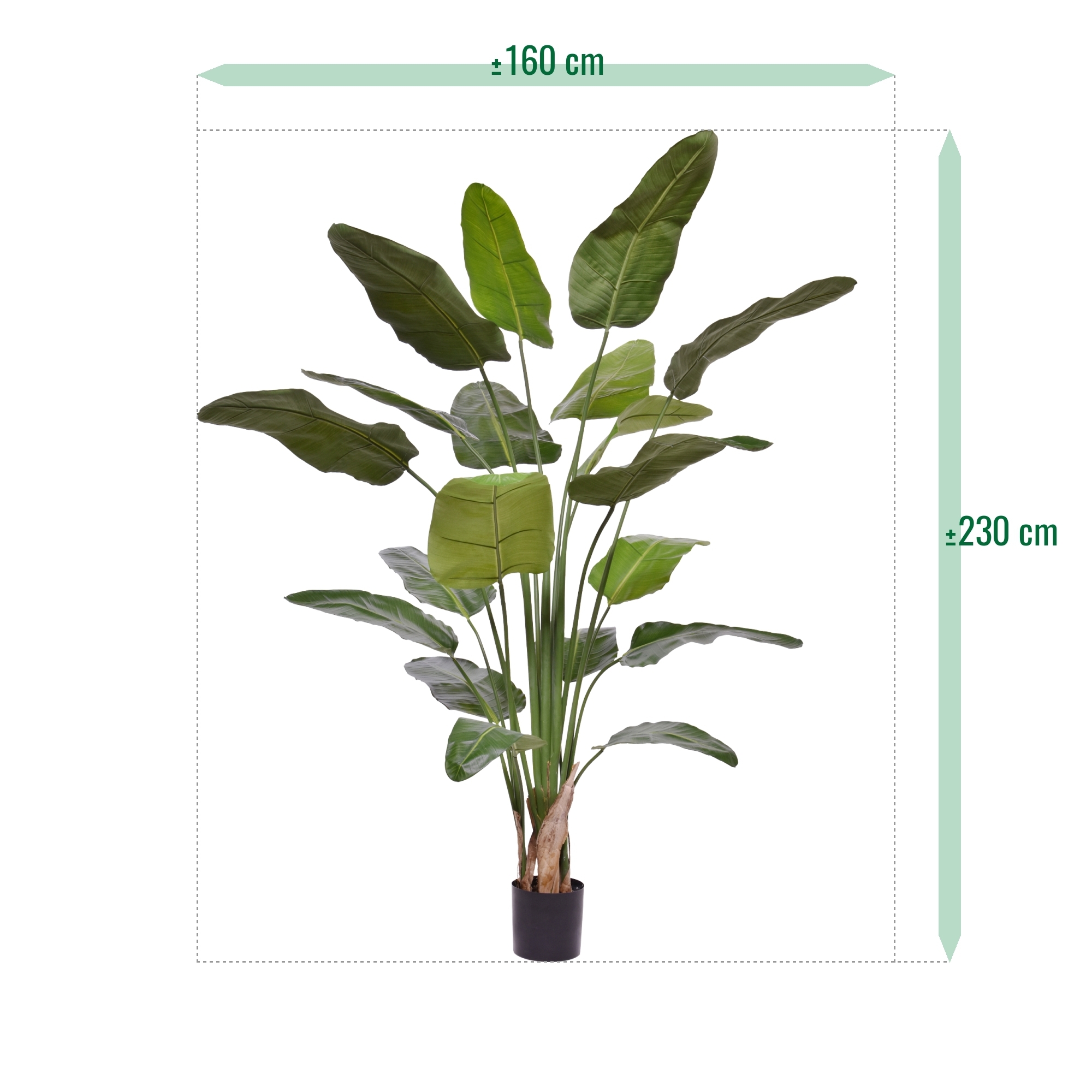 La Pianta Artificiale Strelitzia Nicolai 230cm Deluxe è un'aggiunta maestosa a qualsiasi ambiente, con un'altezza di 230 cm e una larghezza impressionante di 160 cm. Questa grande pianta artificiale Strelitzia porta un'atmosfera tropicale nel tuo salotto, ufficio, ristorante o ingresso, senza bisogno di manutenzione.