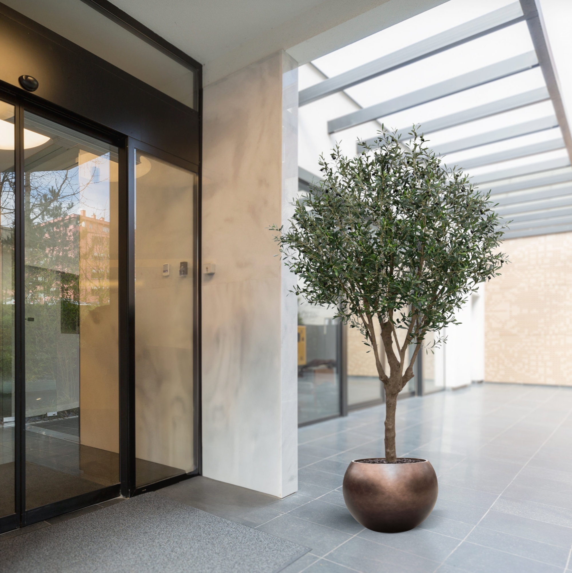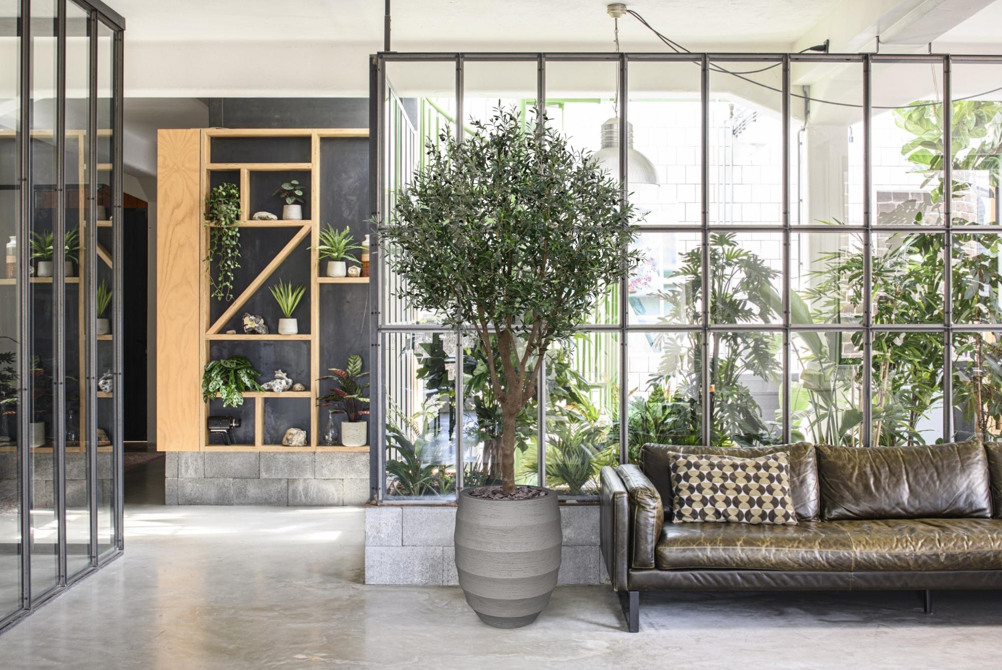 Più grande più grande! Portate il calore e il fascino del Mediterraneo in casa con questo vero e proprio richiamo visivo. Con l'impressionante altezza di 250 cm, l'albero artificiale di ulivo è perfetto da collocare in grandi ambienti, come un foyer o un giardino d'inverno. Ma l'albero è perfetto anche per gli affari; riuscite già a vederlo brillare nel vostro ristorante?