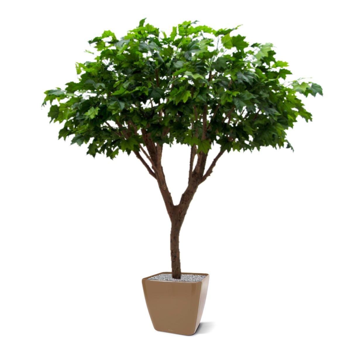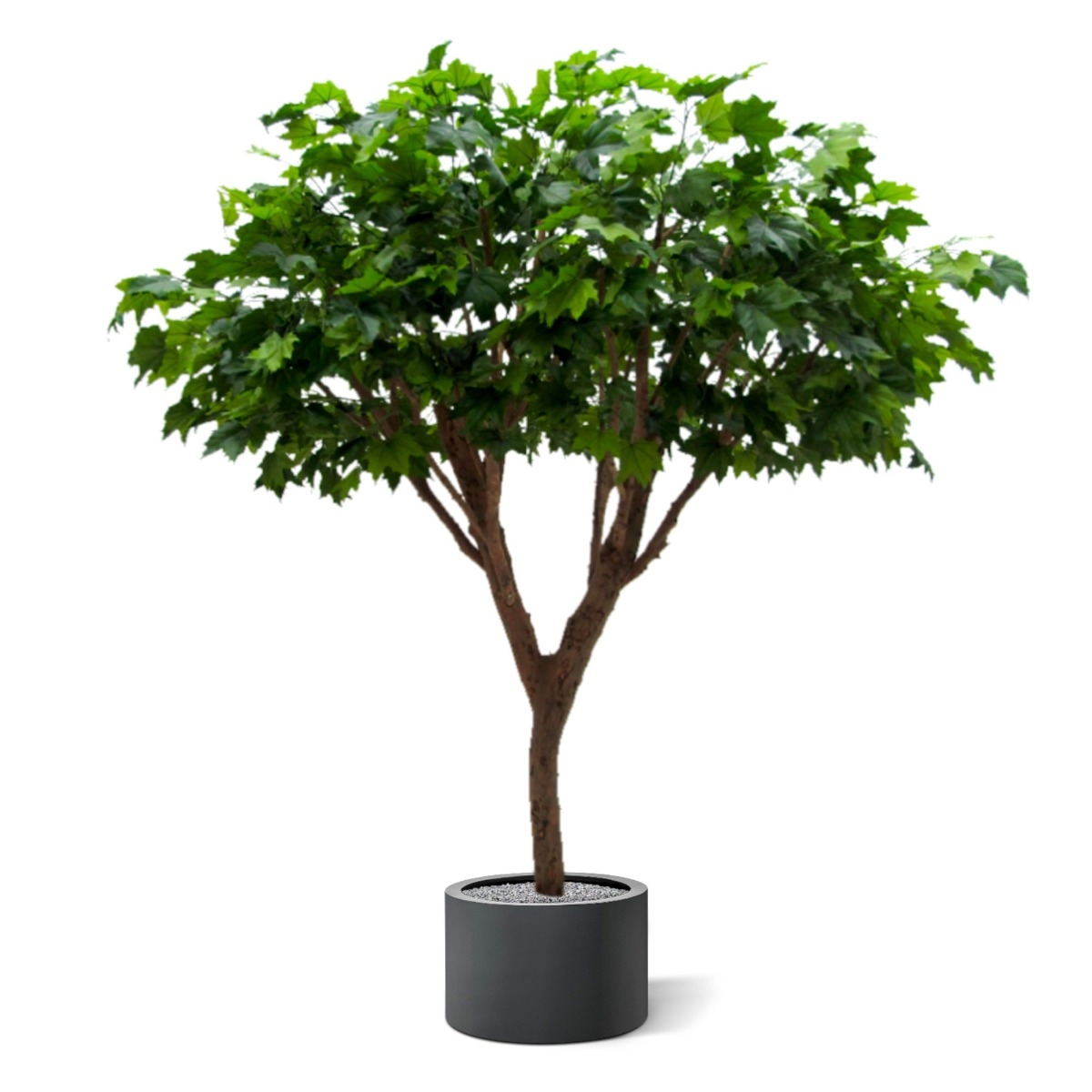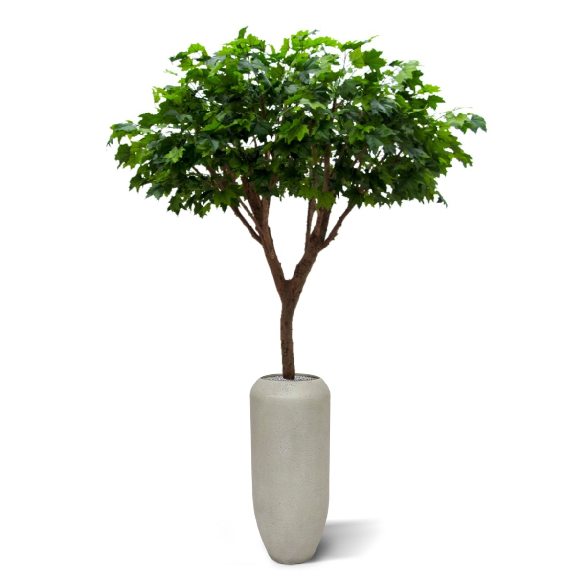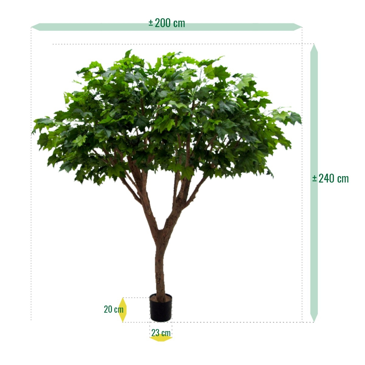 Questa replica ignifuga dell'albero Maple Deluxe fa bella mostra di sé con i suoi 2,4 metri. L'albero artificiale di qualità è realizzato su una struttura a fusto di vero legno ed è particolarmente ben fornito di numerose foglie di Acero ignifugo. L'Acero arti