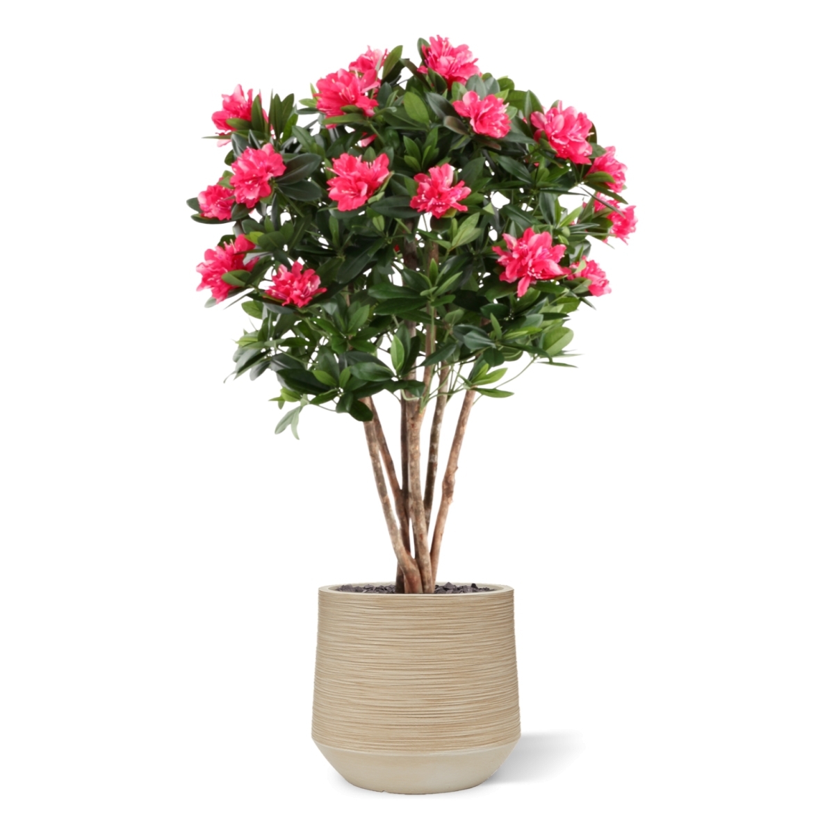 Aggiungi un tocco raffinato e colorato al tuo interno con la Pianta Artificiale Rhododendron Deluxe 115 cm Cerise. Questa splendida pianta artificiale combina un tronco in legno naturale con foglie meticulosamente realizzate e fiori vibranti in un colore ceris
