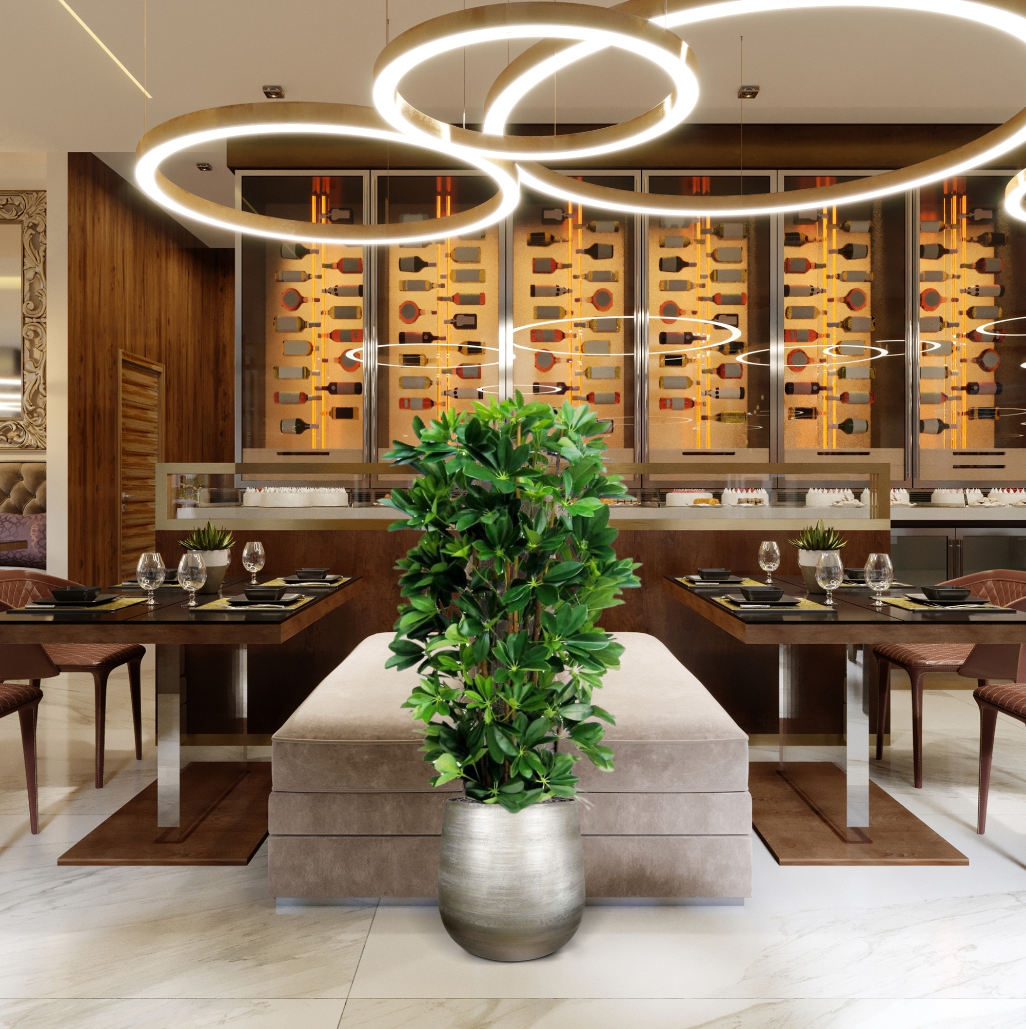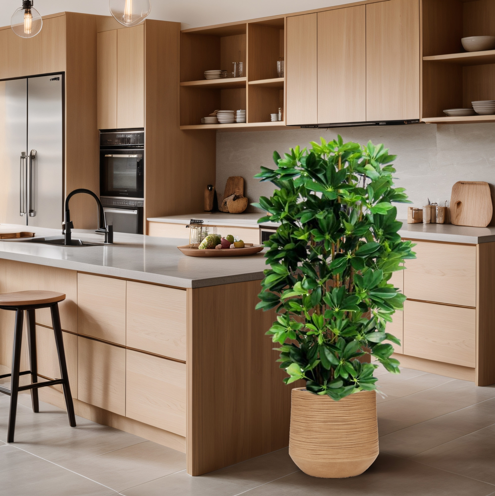 Questa splendida copia di una pianta di Schefflera ha un aspetto incredibilmente reale, anche grazie al gran numero di foglie. Il modello a colonna, appositamente progettato da BM™ Luxury, può essere utilizzato perfettamente in interni moderni e sta molto bene