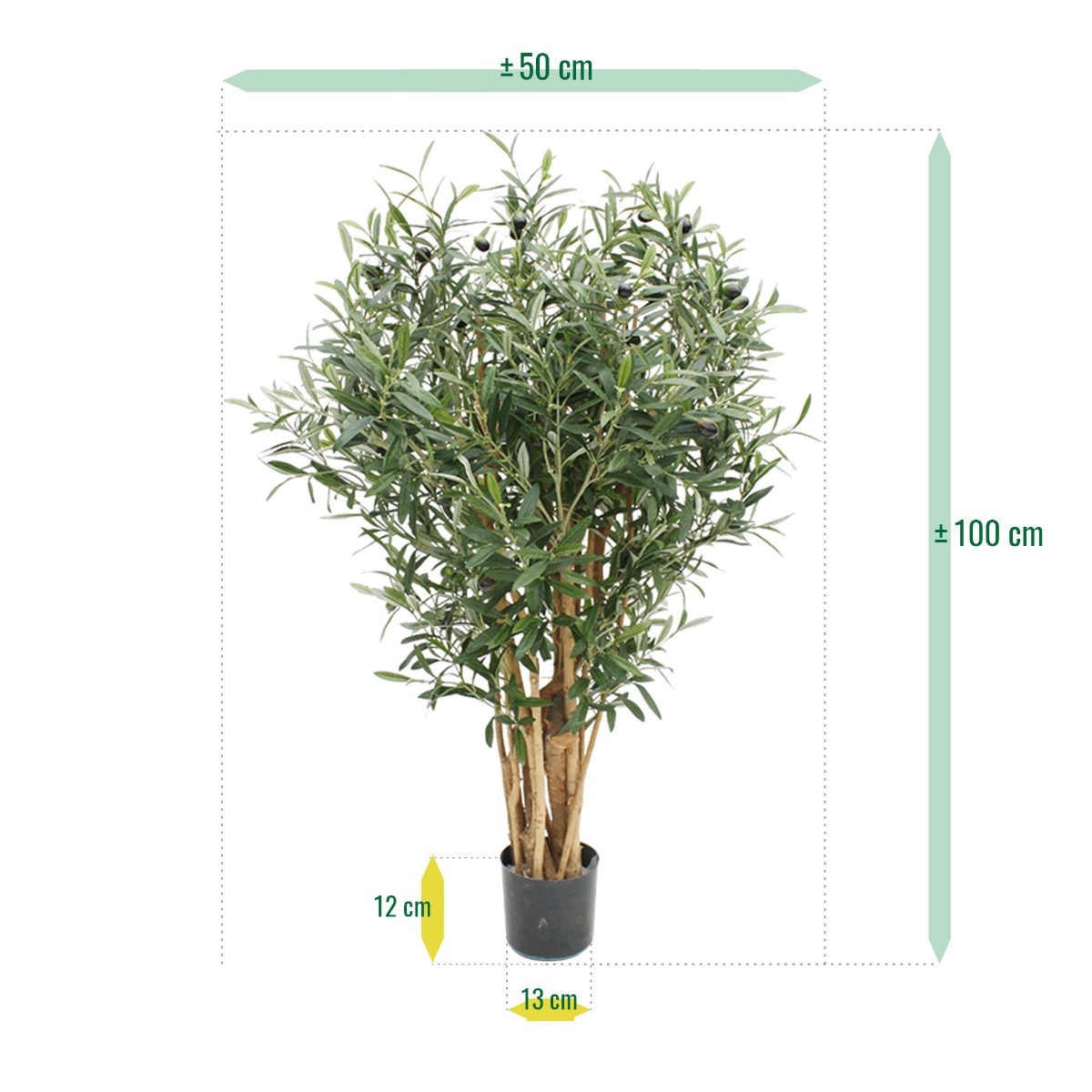 Questo ulivo di seta di circa 100 cm porterà l'atmosfera mediterranea nella vostra casa. Sia le foglie di ulivo imitate che le olive sono indistinguibili da quelle vere. L'ulivo deluxe è realizzato su una moltitudine di veri tronchi di legno, per un aspetto pi