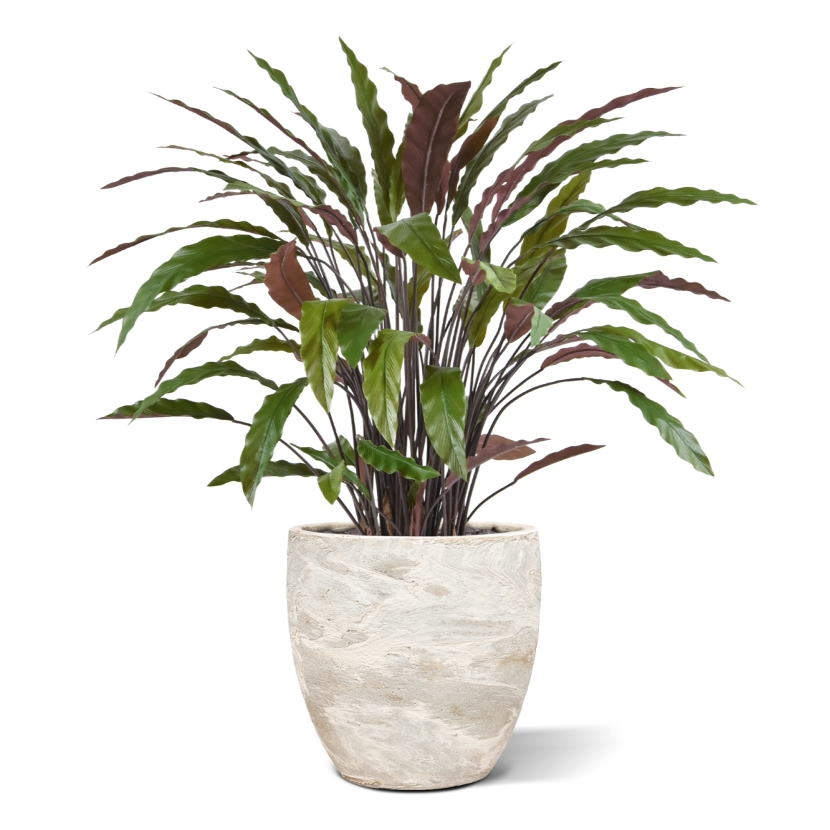 Se siete alla ricerca di una bella pianta da fogliame per l'ufficio o il soggiorno, questa Calathea è assolutamente da provare. Grazie alla sua struttura, all'abbondanza di foglie e all'alta qualità dei materiali utilizzati, questa pianta è quasi indistinguibi