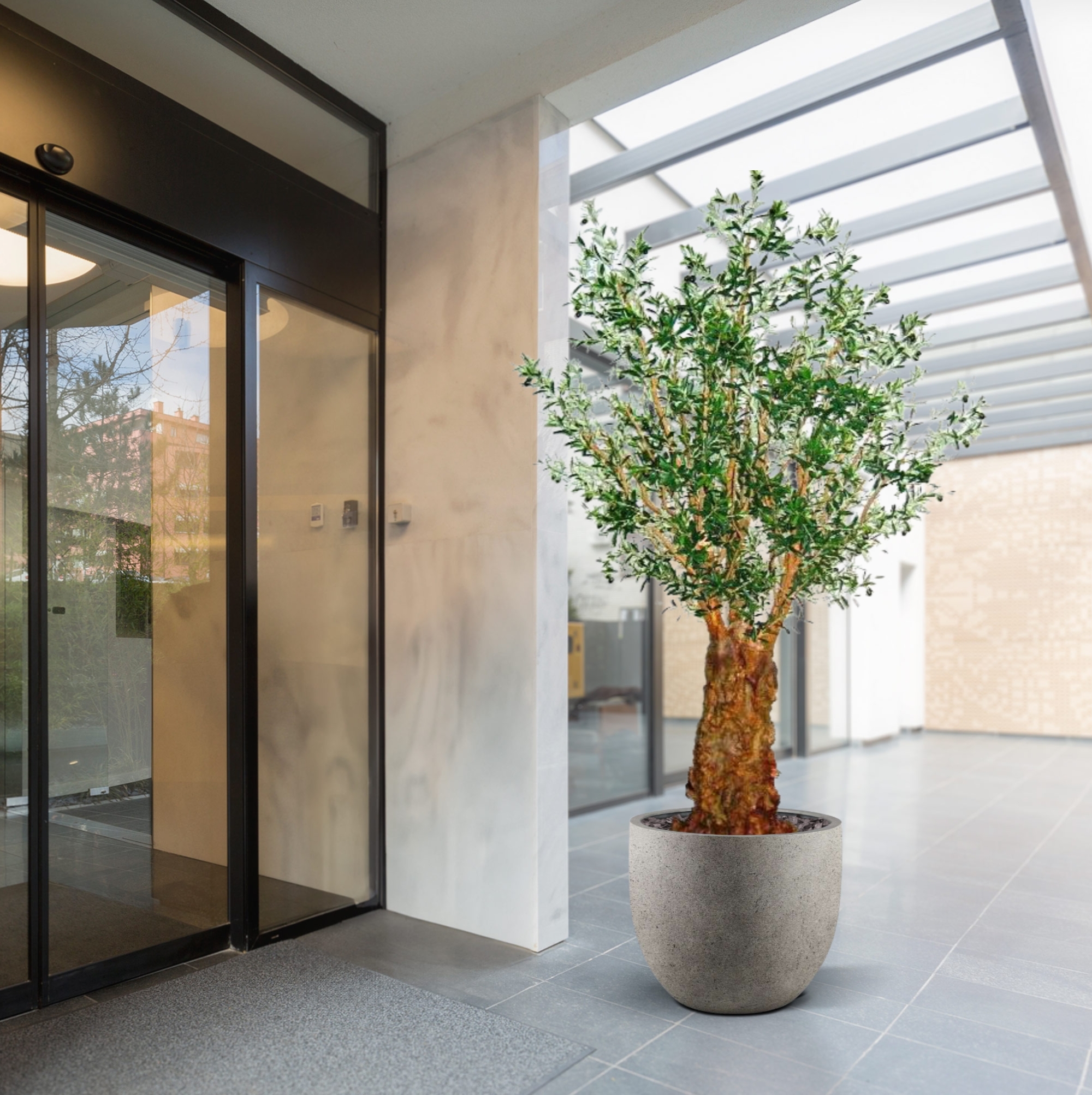 Se siete alla ricerca di un'attrazione mediterranea, questo esclusivo ulivo artificiale è un'ottima scelta! Il bellissimo ulivo è stato appositamente progettato da BM™ Luxury. L'antico ulivo porta più di 10.000 foglie e circa 200 olive. La parte inferiore del
