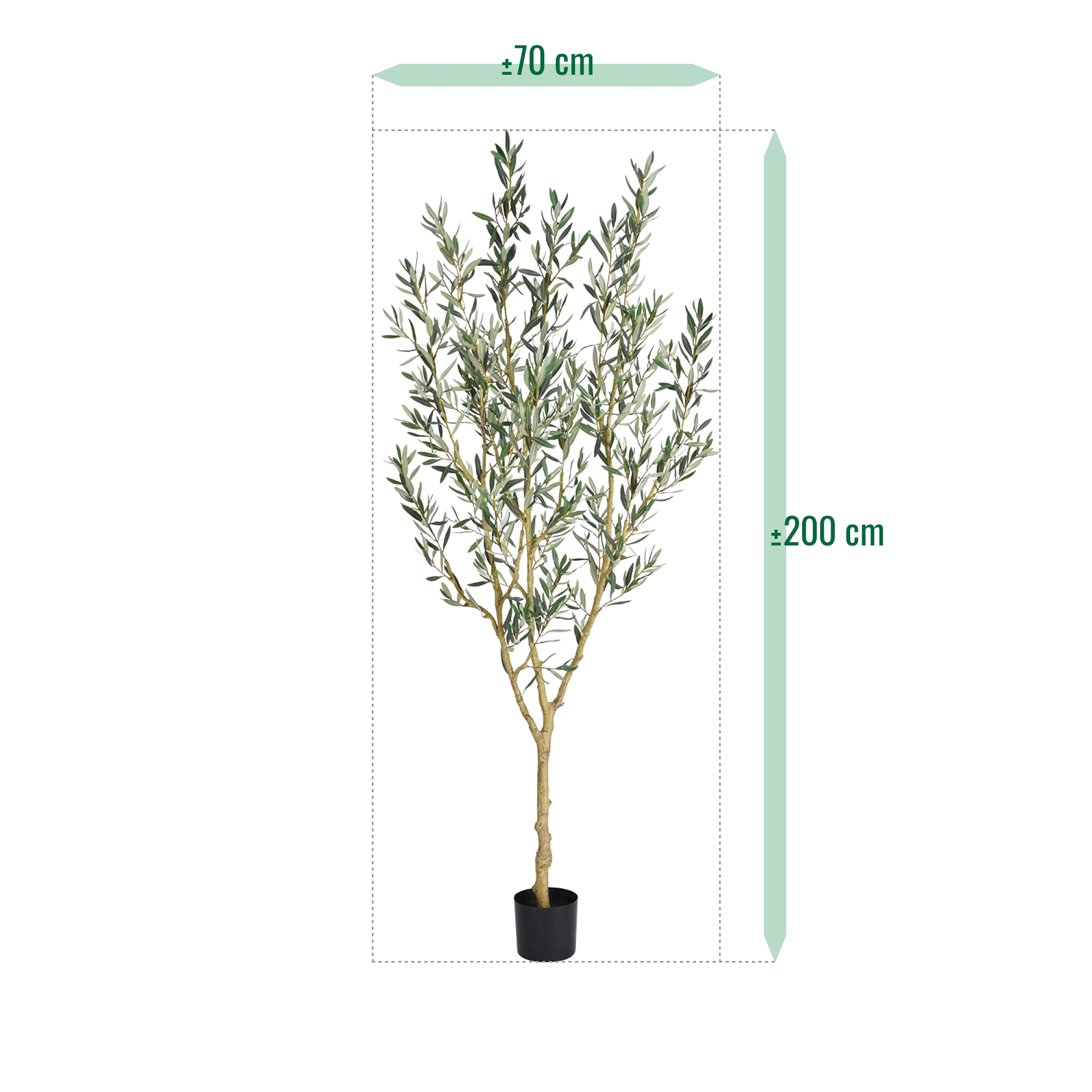 Il Ulivo Artificiale Deluxe 200 cm è un’elegante e raffinata decorazione che porta immediatamente un tocco di atmosfera mediterranea in qualsiasi ambiente. Con i suoi 200 cm di altezza e 70 cm di larghezza, questo ulivo artificiale diventa un elemento distinti