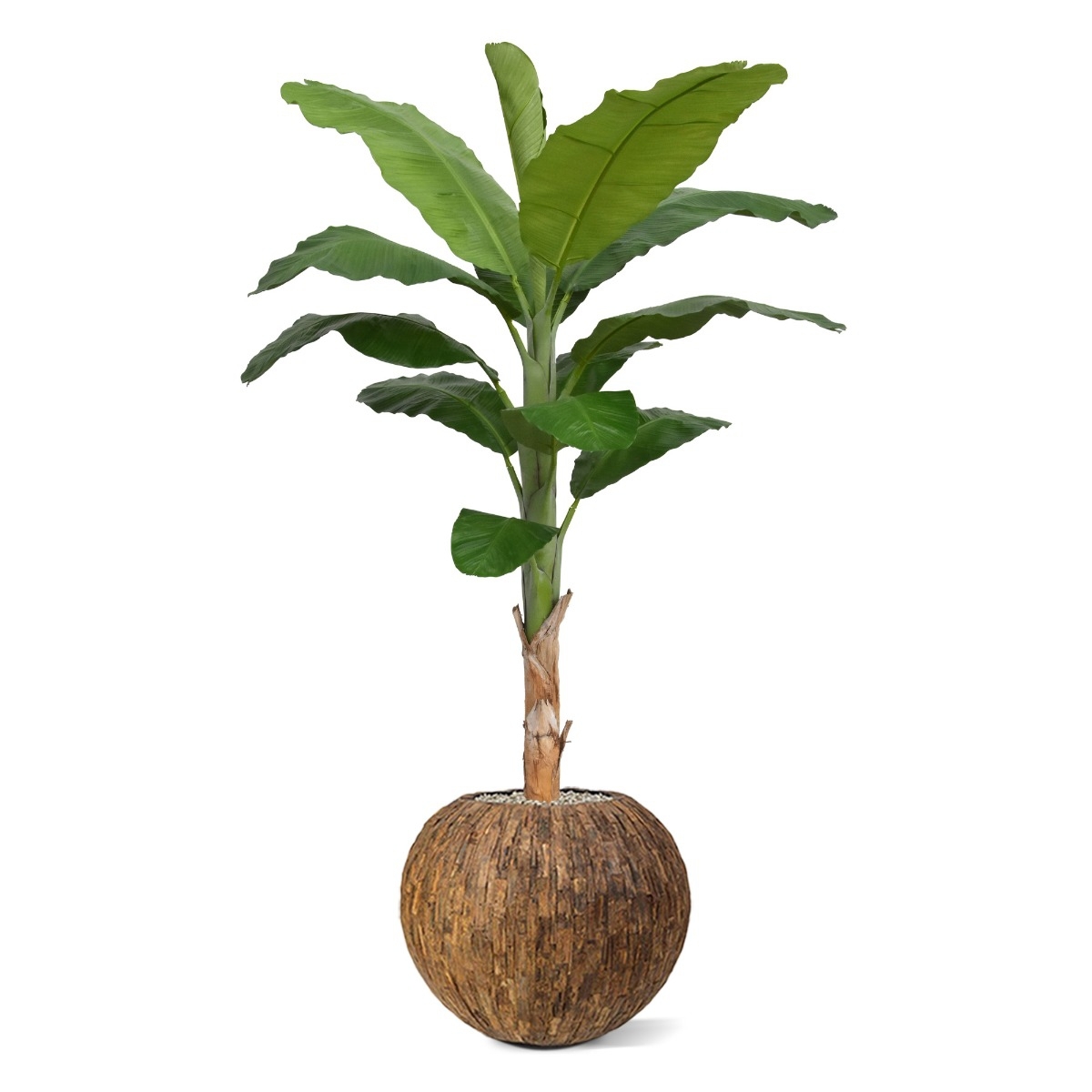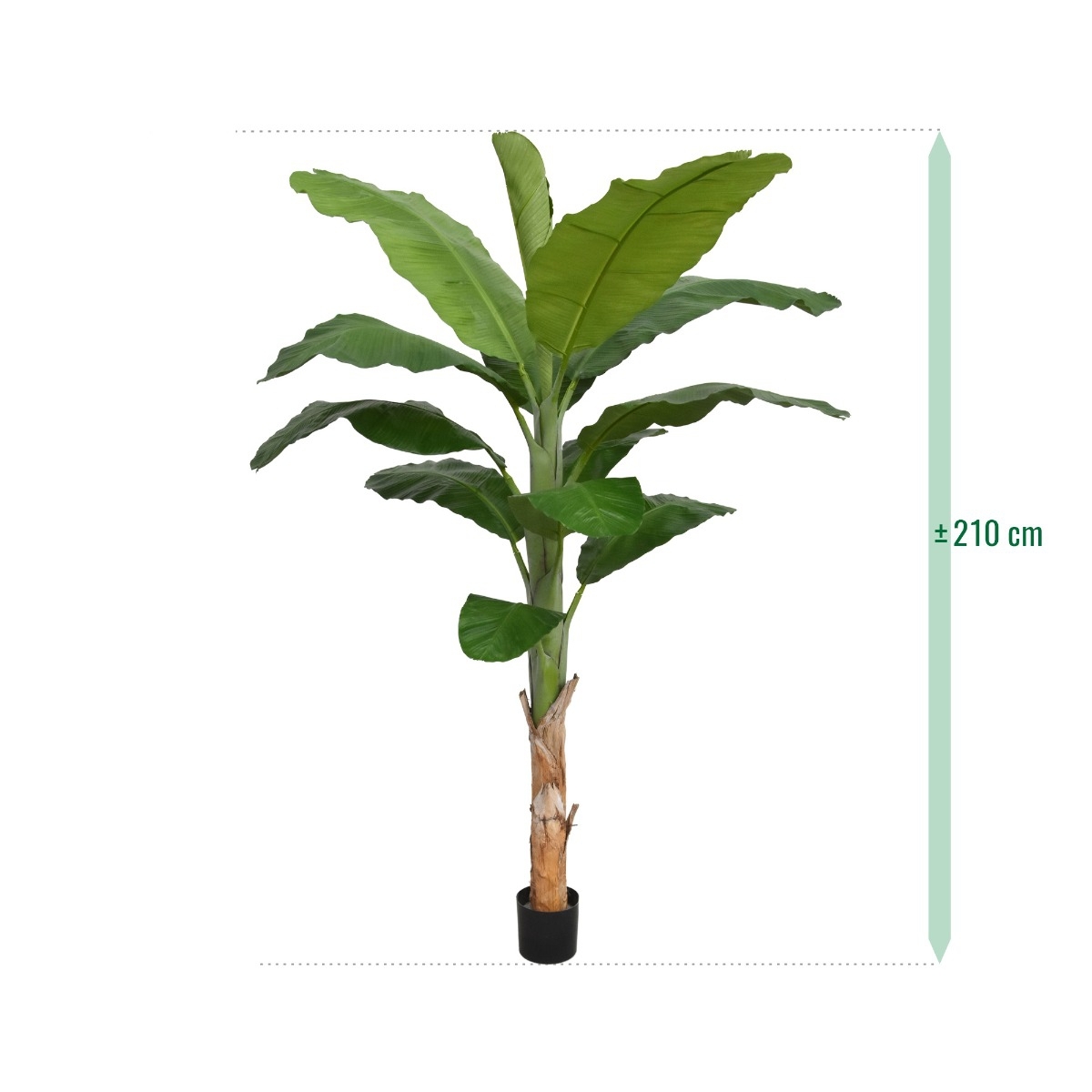 Che aspetto! Questo bellissimo albero di banane è riprodotto così fedelmente che non noterete la differenza con la variante reale. Grazie al vero tronco di legno e alle foglie di seta artificiali, l'aspetto è naturale.