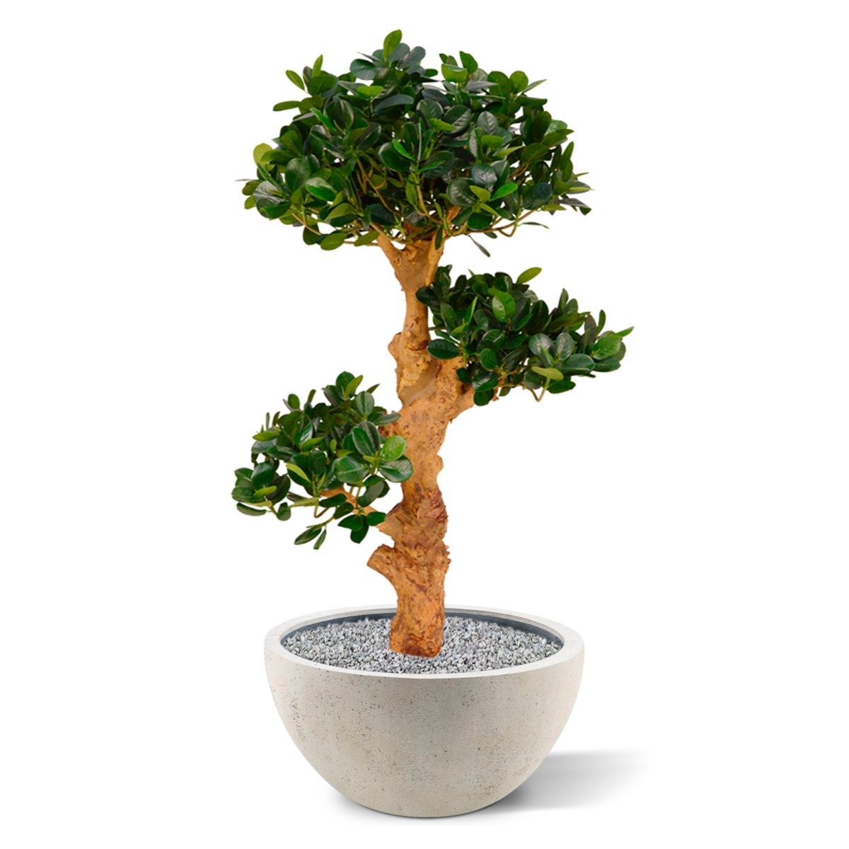 Per chi ama la qualità e l'esclusività, questo albero artificiale Panda Bonsai è sicuramente consigliato. Sembra che il Ficus Panda Bonsai sia stato preso direttamente dal giardino giapponese! Il bonsai artificiale Panda è costruito intorno a un estroso tronco
