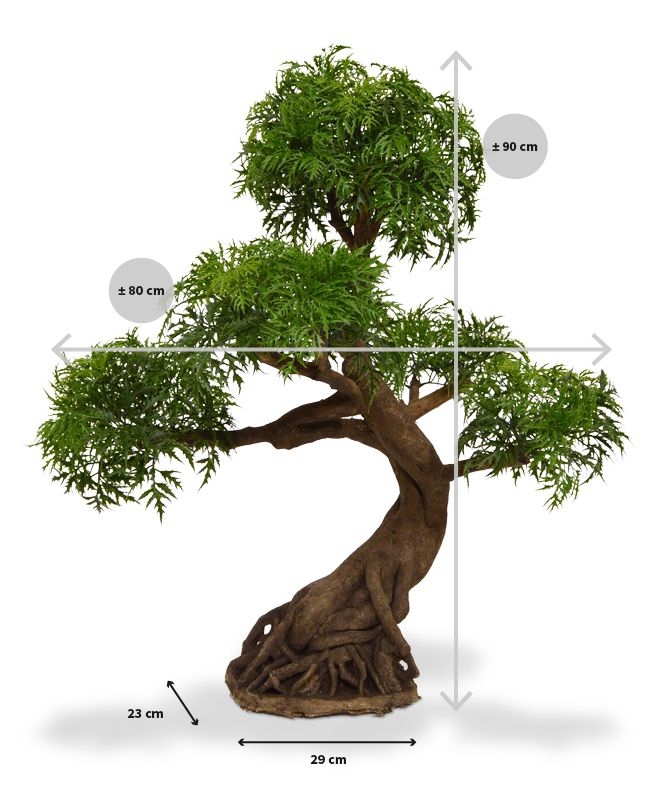 Questo bonsai Ming Aralia verde 90 cm in plastica resistente ai raggi UV è un'ottima decorazione per interni ed esterni. Soprattutto se si vuole creare un'atmosfera orientale! Poiché il protettore UV è incorporato nella materia prima, possiamo garantire che qu