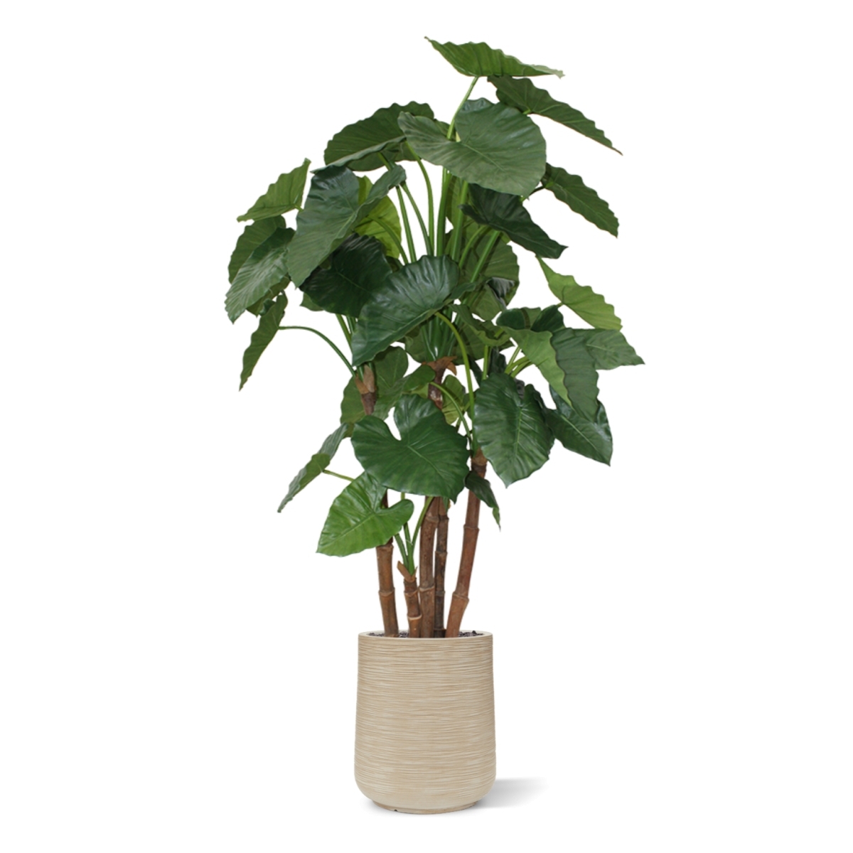 Questa pianta artificiale Alocasia Calidora Deluxe 165 cm, autoprodotta, è una pianta eccezionalmente decorativa sotto ogni aspetto! Le grandi foglie sono una perfetta imitazione della vera Alocasia, comune in natura nelle aree tropicali. Nei Paesi Bassi l'Alo