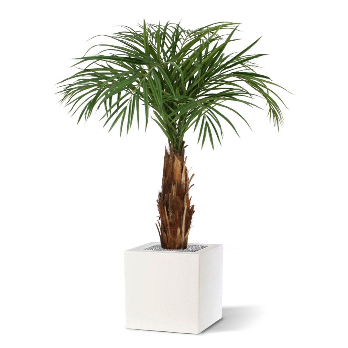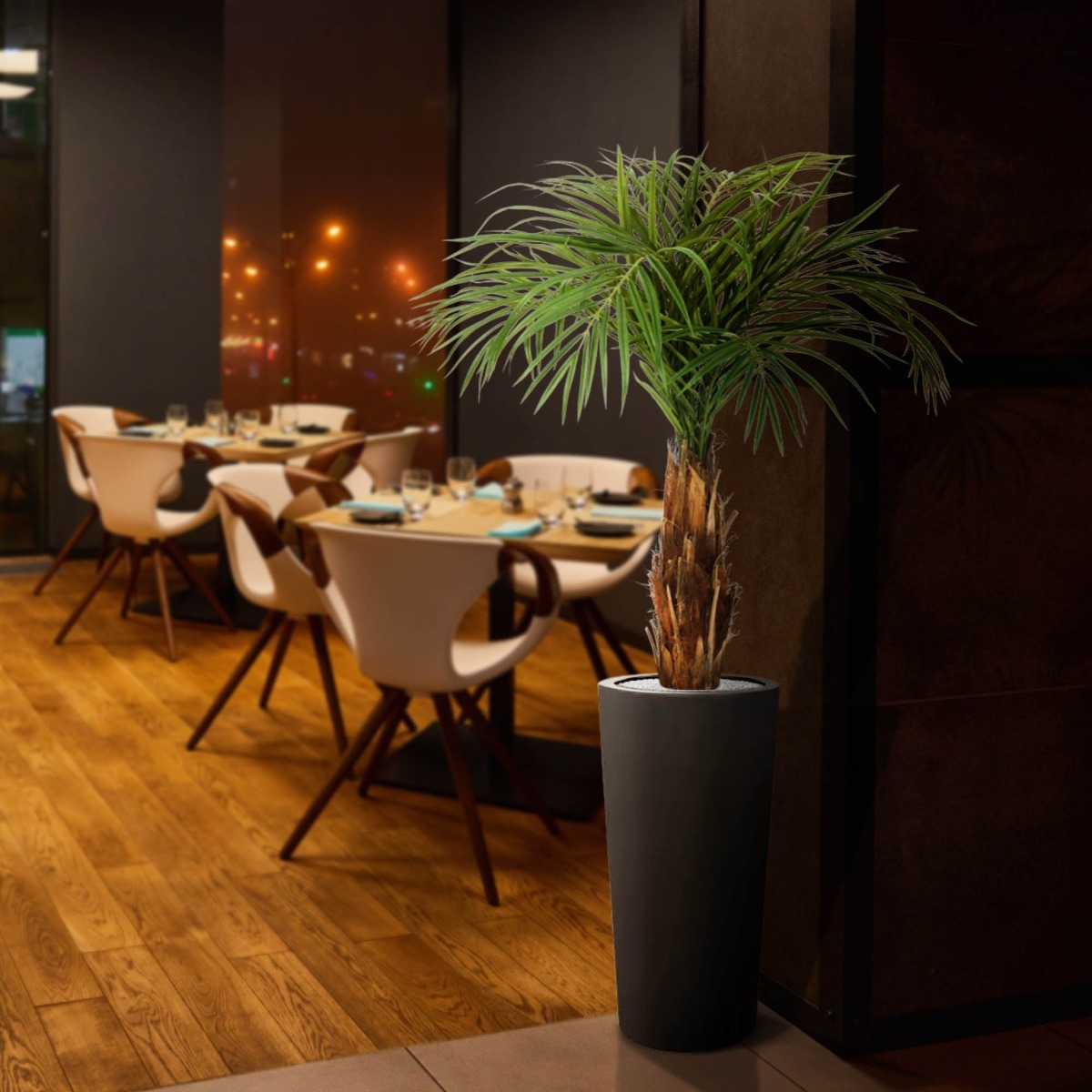 La palma Areca su tronco è la pianta tropicale perfetta per la casa o l'ufficio! Questa palma Areca ha un vero tronco di legno ed è alta circa 120 cm. I lunghi rami della palma, con foglie appuntite molto ben imitate, danno una sensazione di lusso. La pianta v