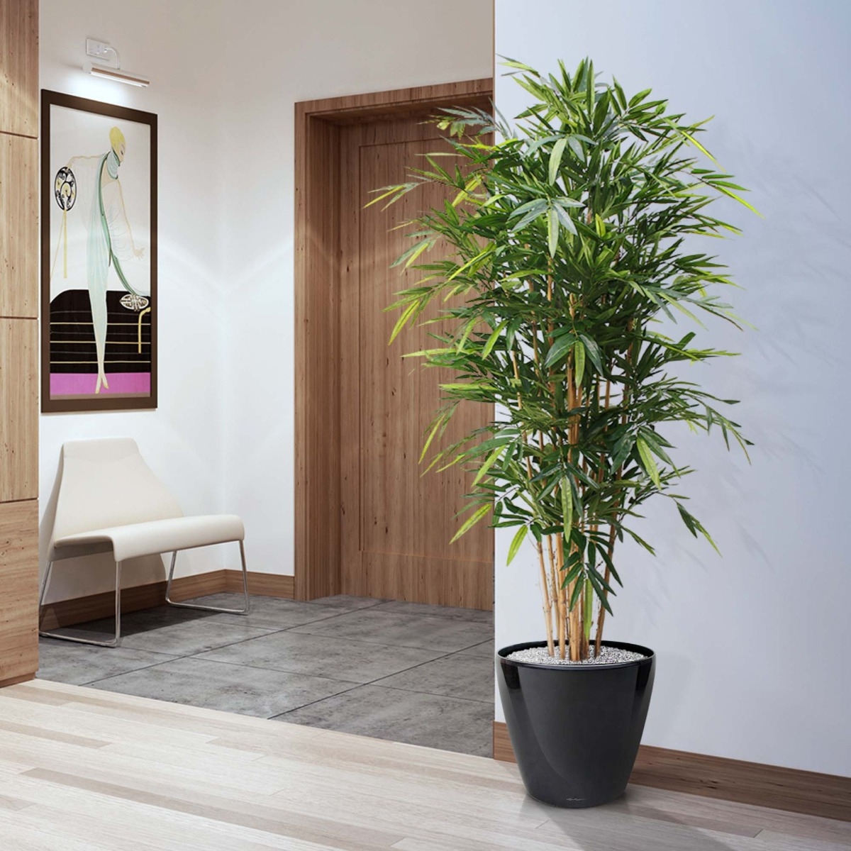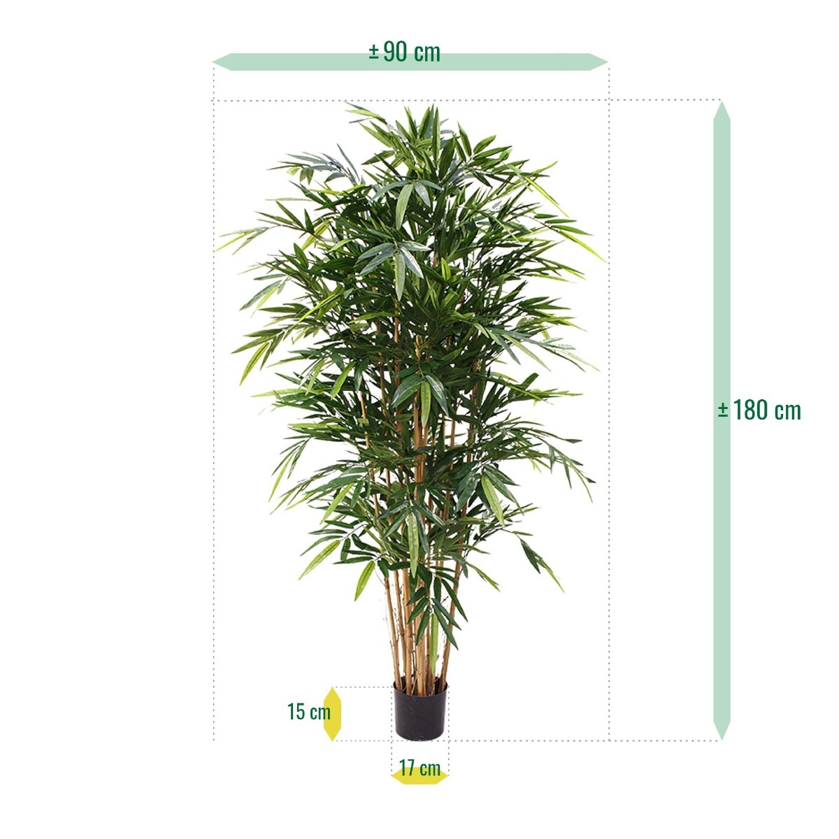 Il bestseller degli alberi di bambù artificiali! Questa replica di Bamboo Deluxe 180 cm è un modello extra pieno e realizzato con foglie di Bamboo di qualità naturale! Il Bamboo Deluxe finto è composto da non meno di 12 bastoncini di Bamboo veri e in totale il