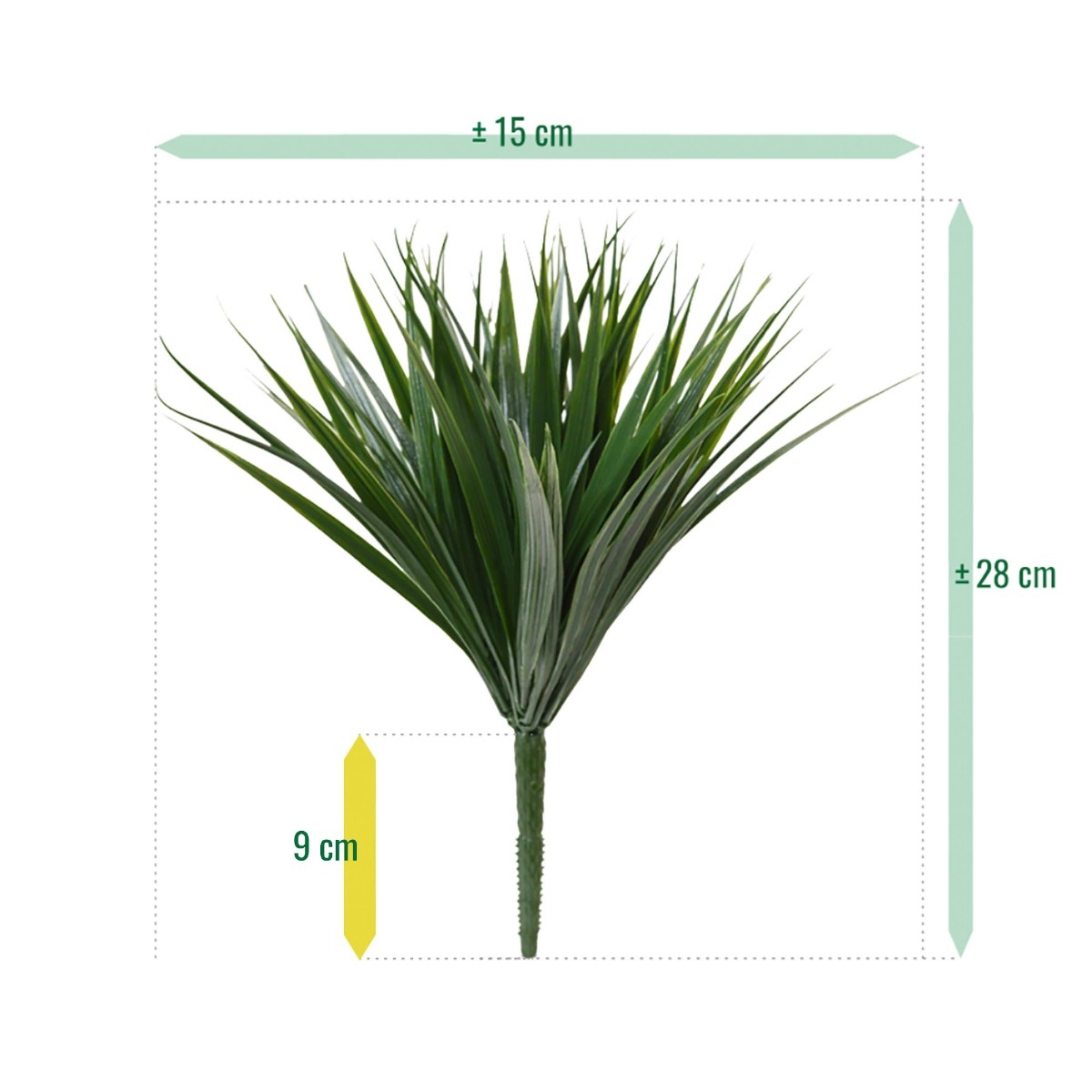 Questo cespuglio di bambù artificiale e resistente ai raggi UV di 25 cm può servire come pianta perfetta per realizzare piccole composizioni da tavola. Le foglie appuntite di diverse altezze e i piccoli pomelli contraffatti rendono questo bouquet sintetico una