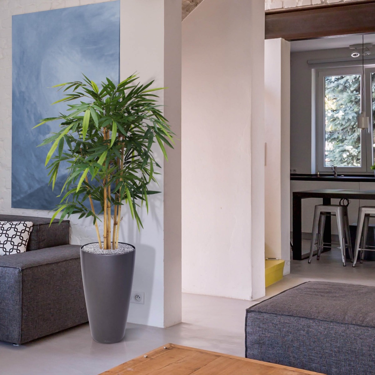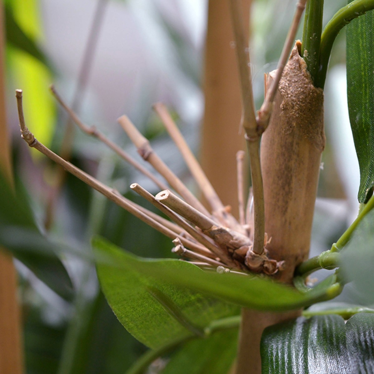 Questo bambù da 120 cm è uno dei più venduti tra le piante artificiali ed è di qualità molto naturale! Questo bambù artificiale è realizzato con vere canne di bambù e la foglia di bambù in seta è tra le più fedeli alla natura! L'altezza dell'albero è di circa