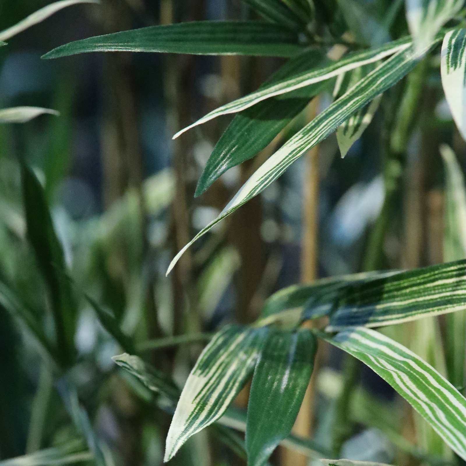 Questo nuovo modello di bambù artificiale, con bellissime foglie variegate, è una bella aggiunta alla nostra collezione di piante di bambù. Il bambù variegato è realizzato con vere canne di bambù e foglie di bambù colorate di giallo chiaro/verde, dall'aspetto