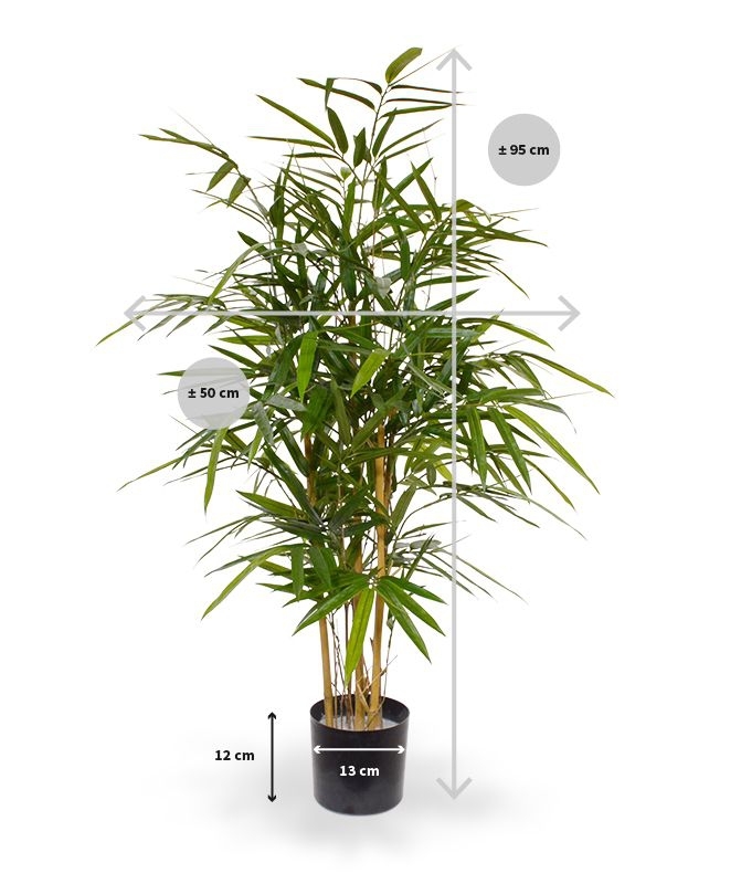 Questa pianta artificiale Royal Bamboo da 90 cm è caratterizzata dal fatto che le foglie sono più strette e i rami crescono più verso l'alto rispetto ad altre specie di bambù. Un bambù artificiale di qualità molto naturale, con molti rami di bambù vero. Confer