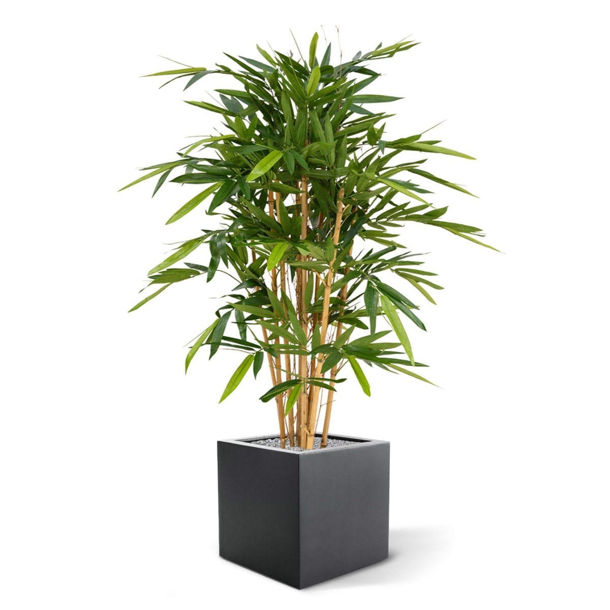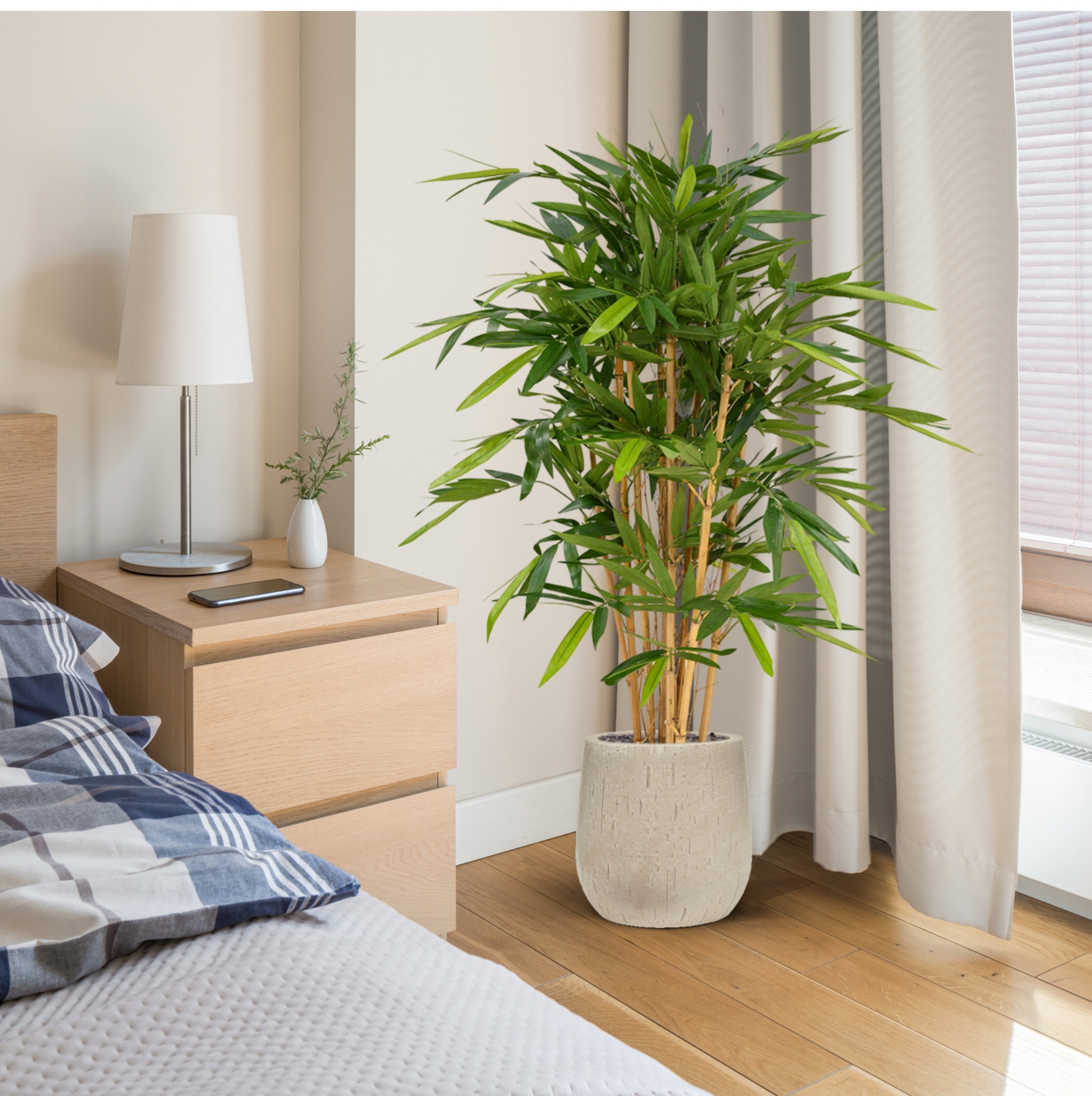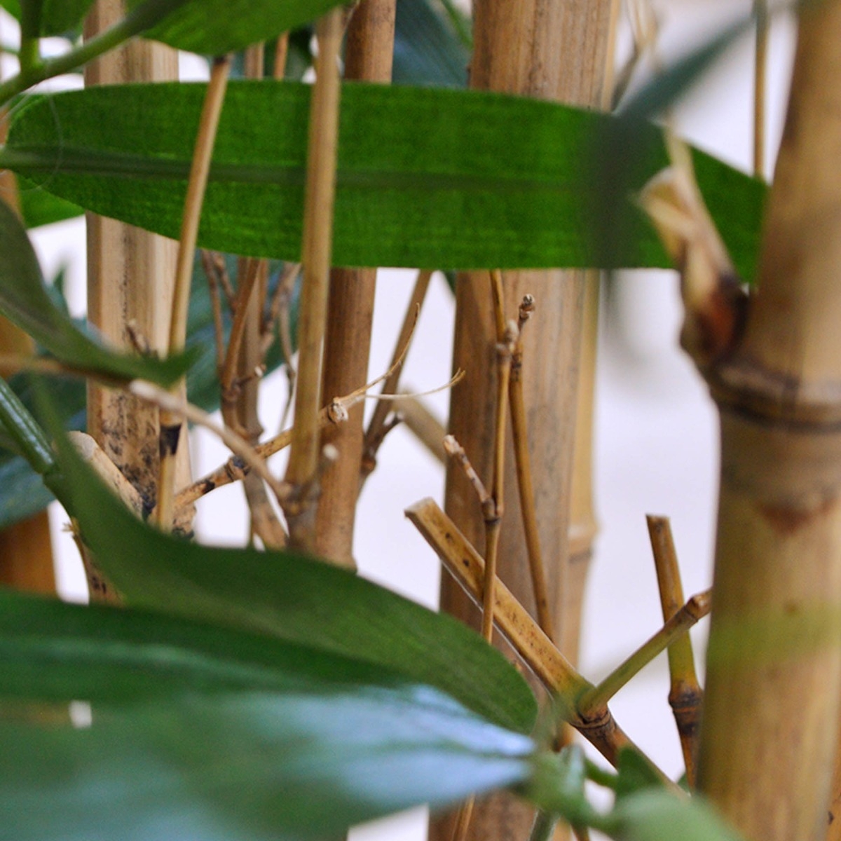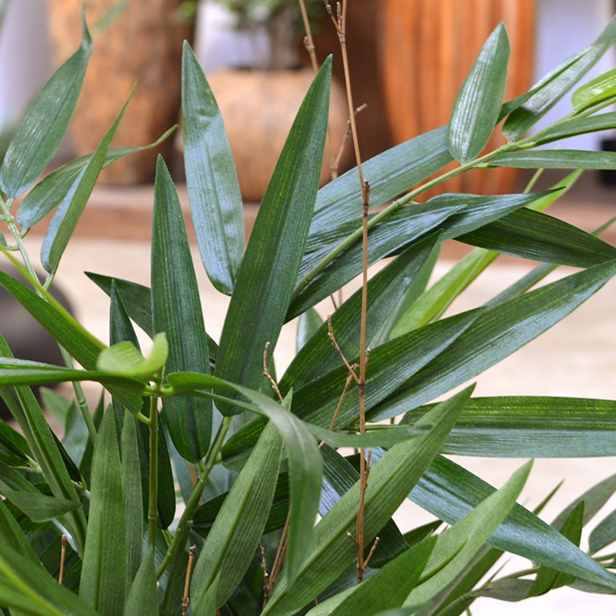 Il Bamboo Deluxe 120 cm è il più venduto tra gli alberi artificiali e di qualità speciale! La versione Deluxe è costruita su 8 vere stecche di bambù con sottili rami di bambù infilati in mezzo. La foglia di bambù artificiale in seta è tra le più naturali! L'al