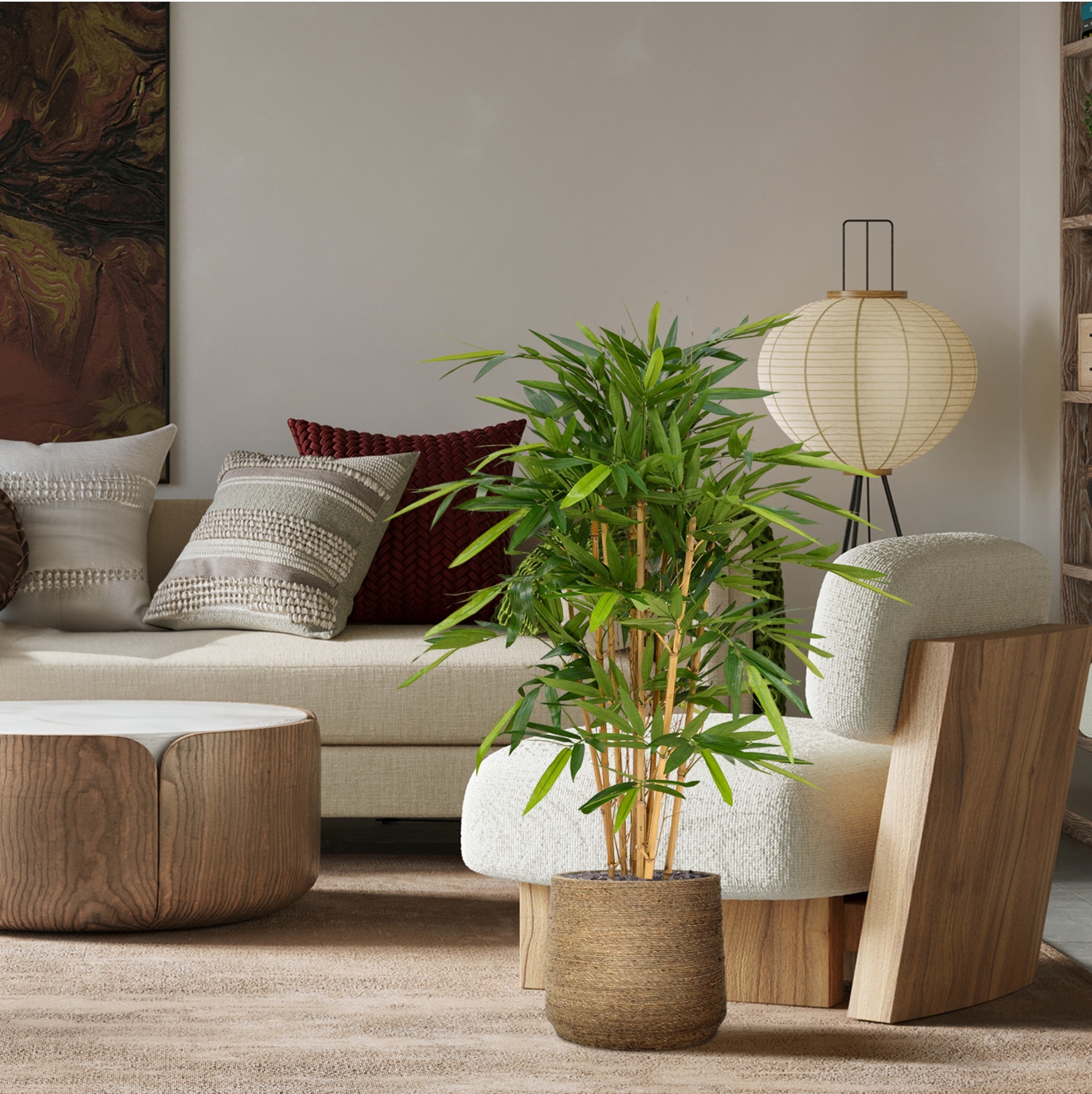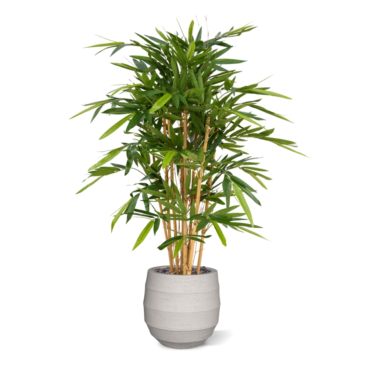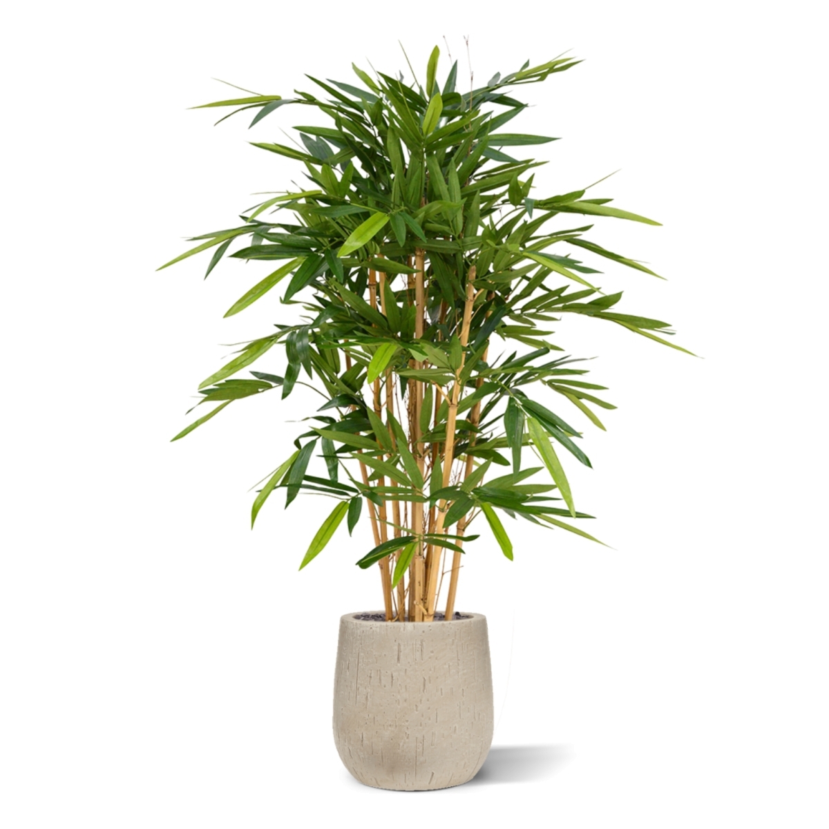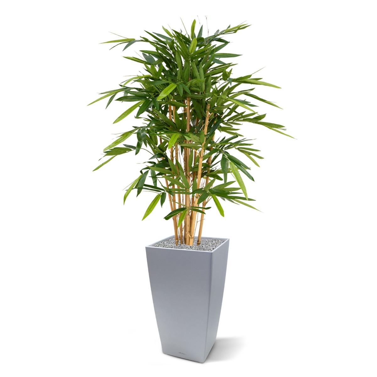 Il Bamboo Deluxe 120 cm è il più venduto tra gli alberi artificiali e di qualità speciale! La versione Deluxe è costruita su 8 vere stecche di bambù con sottili rami di bambù infilati in mezzo. La foglia di bambù artificiale in seta è tra le più naturali! L'al
