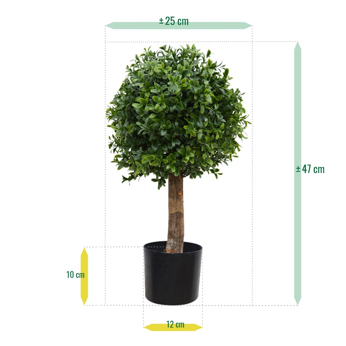 Questa piccola palla di bosso da 25 cm deluxe è costruita su un vero tronco di legno ed è realizzata in plastica PVC di qualità, il che la rende un'attrazione ideale per decorare l'ingresso. Grazie alle sue dimensioni ridotte, questa pianta artificiale troverà