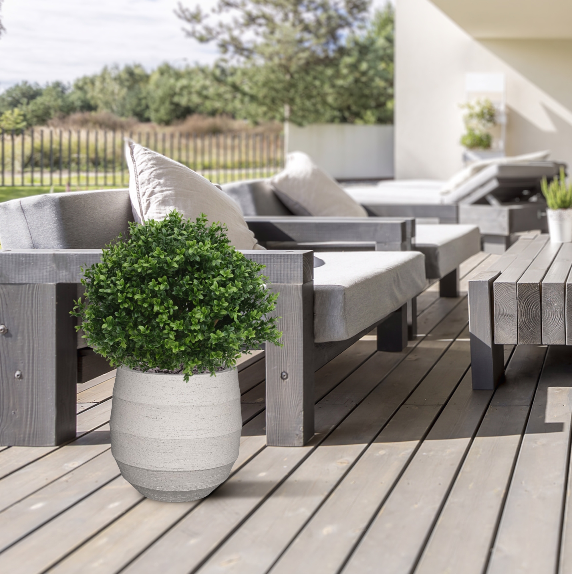 Questo Buxus Bulb Deluxe 40 cm, resistente ai raggi UV, è realizzato in PVC di alta qualità. Ciò rende questo albero artificiale resistente ai raggi UV ideale per realizzare splendide decorazioni all'esterno. La versione rinnovata è, soprattutto per il suo col