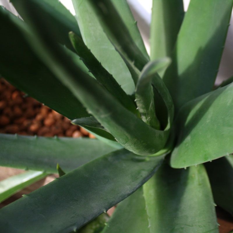Questo bouquet artificiale di Aloe Vera, particolarmente ben imitato, proviene dalla famiglia dei Cactus. Con questa pianta artificiale è possibile creare in un attimo un "look" tropicale che si adatta perfettamente a un ambiente moderno e che risulta particol