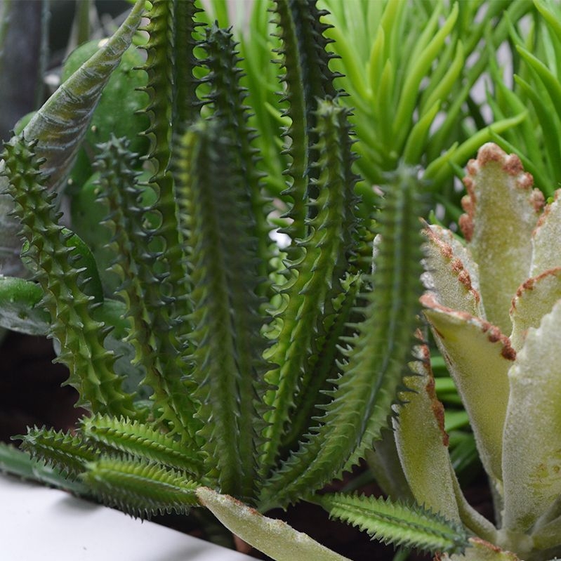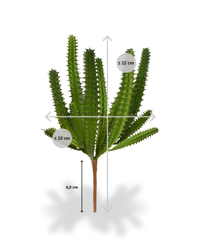 L'Euphorbia Mini Cactus 20 cm (ingens) artificiale, con le sue spine appuntite, sembra un cactus ma in realtà appartiene alla famiglia delle Euphorbia. Il succo lattiginoso è altamente tossico, ma naturalmente in questa variante artificiale non lo è. Per quest